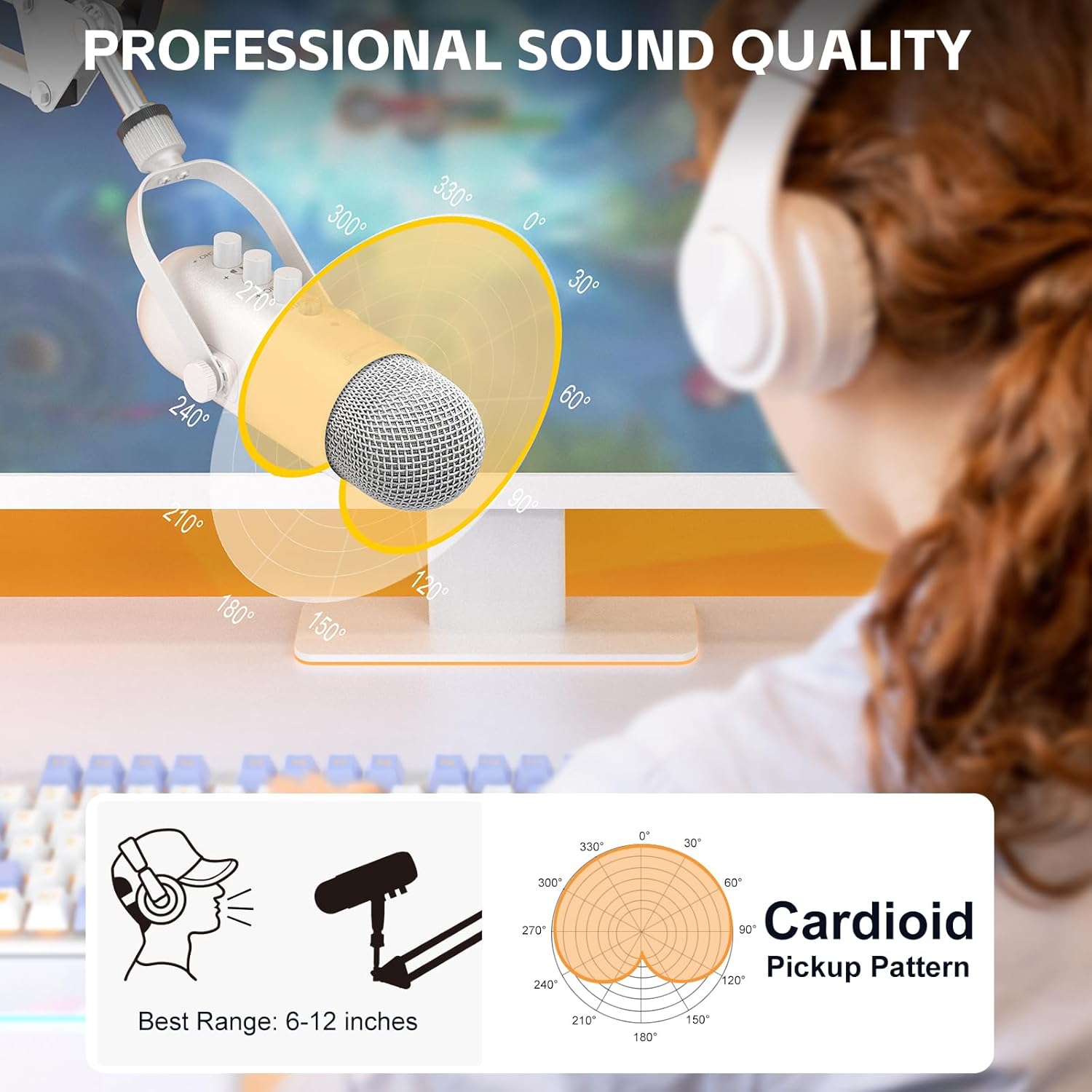 - 【Haltbare Bucharmkonfiguration】Das USB-Podcast-Mikrofon-Set wird mit einem vielseitigen und robusten weissen Scherenarm geliefert, der hervorragende Werkzeuge zum Positionieren bietet, um die Stimme besser einzufangen oder aufzunehmen. Die