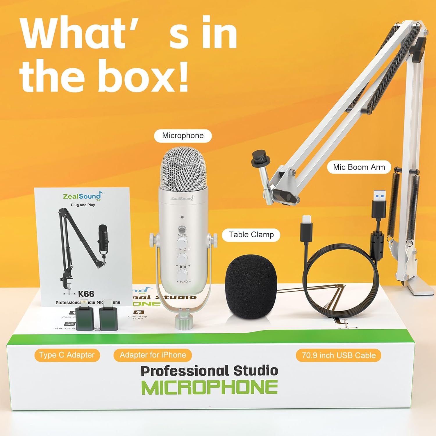 - 【Robuste Kompatibilität】Das K66 Perlweiss USB-Mikrofon lässt sich einfach an Ihren Desktop-PC oder Laptop anschliessen, ohne dass zusätzliche Treiber erforderlich sind. Dieses Kondensatormikrofon zeigt auch die Kompatibilität mit einer Vielzahl