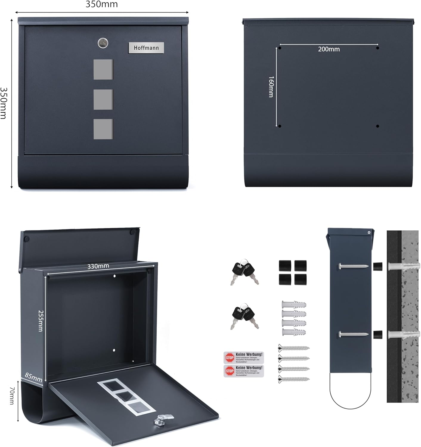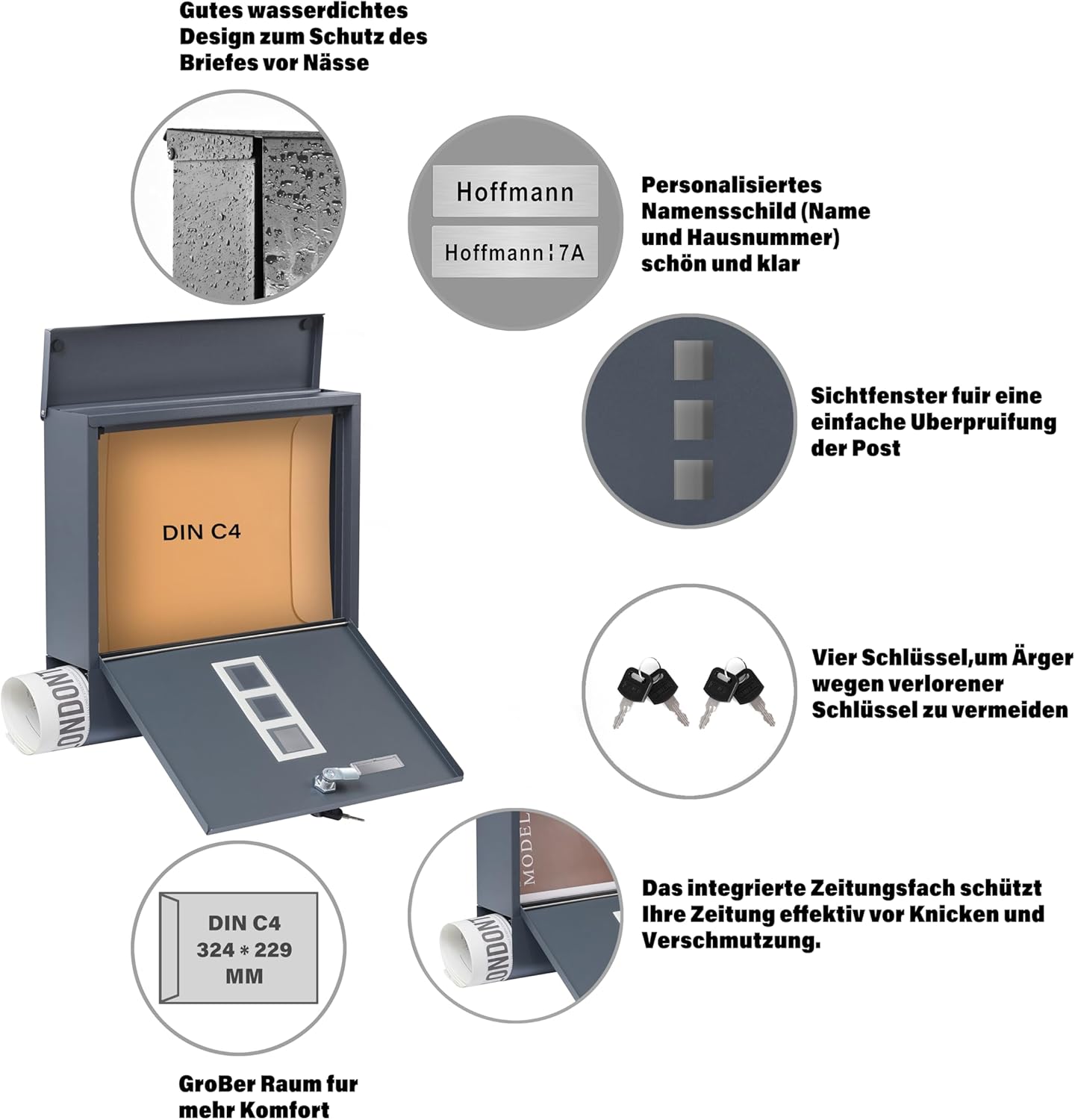 - 【Langlebigkeit】Die Briefkästen sind aus verzinktem Blech gefertigt, um eine lange Lebensdauer zu gewährleisten. Die matte Pulverbeschichtung schützt den Briefkasten vor Umwelteinflüssen - 100 % UV-Schutz, sowie eine hervorragende