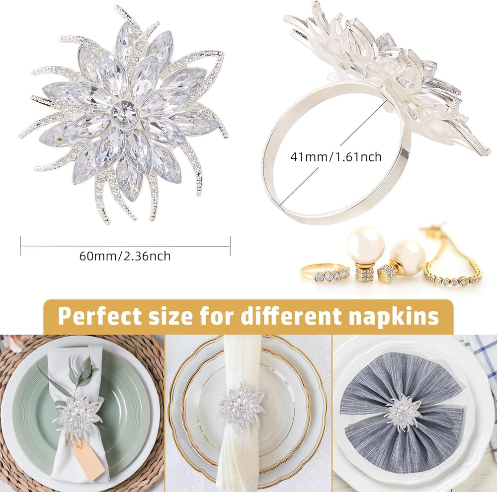 - ✿ Zarte Serviettenringe: Ein Set von 8, schönes Lotus-Design, einfach und elegant, zart und romantisch, exquisite Strasssteine funkeln unter dem Licht, die sehr geeignet für Hochzeit, Geburtstagsfeier, Familien-Abendessen, Freunde Versammlung, auch