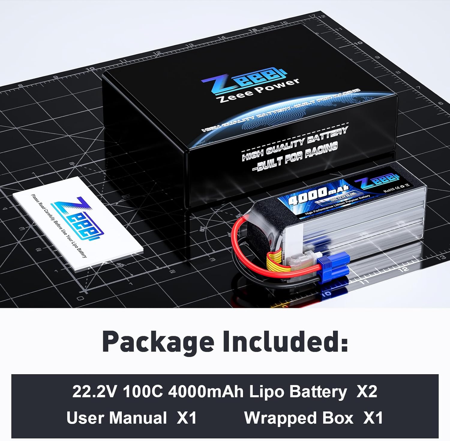 - 【Was Sie bekommen】- 2 Packungen Zeee Lipo 6S Akku 22,2V 100C 4000mAh mit EC5 Stecker und Freundlicher Kundenservice mit schneller Antwort rund um die Uhr.