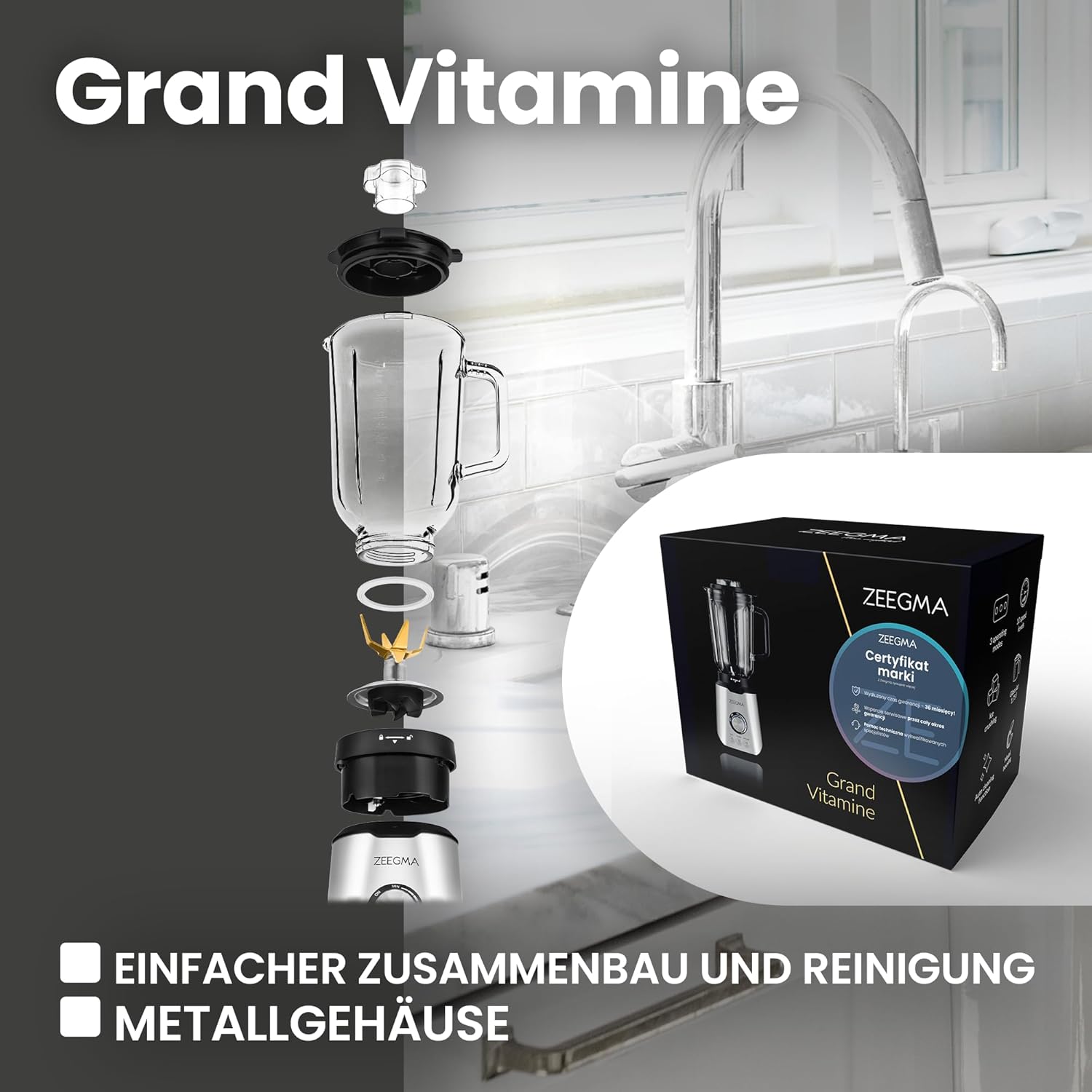 - UNIVERSELLES DESIGN: Zeegma Grand Vitamine Standmixer ist so konzipiert, dass er sowohl in modernen als auch in traditionellen Küchen gut aussieht. Neutrale Schwarz- und Silberfarben passen in jeden Raum