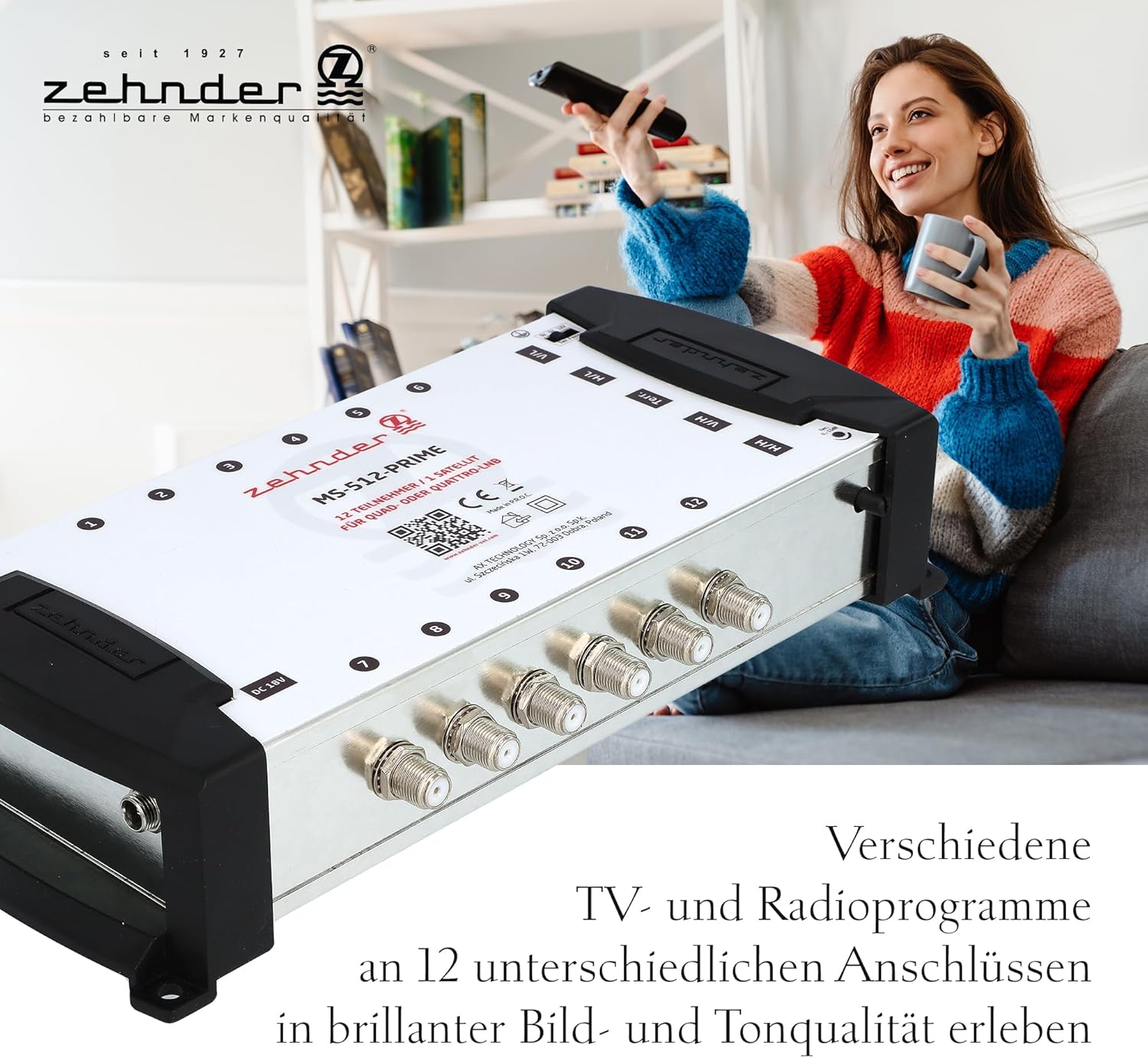 - LIEFERUMFANG - 1x Zehnder MS 512 PRIME Multischalter, 1x externes 18V Netzteil, 1x Bedienungsanleitung, 1x Aufbewahrungsbox, 1x F-Stecker-Aufdrehhife (Werkzeug)