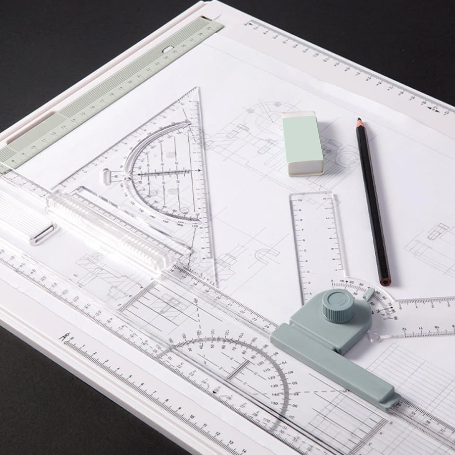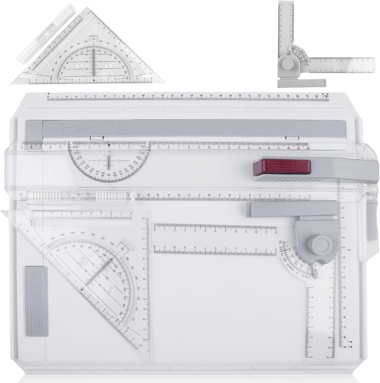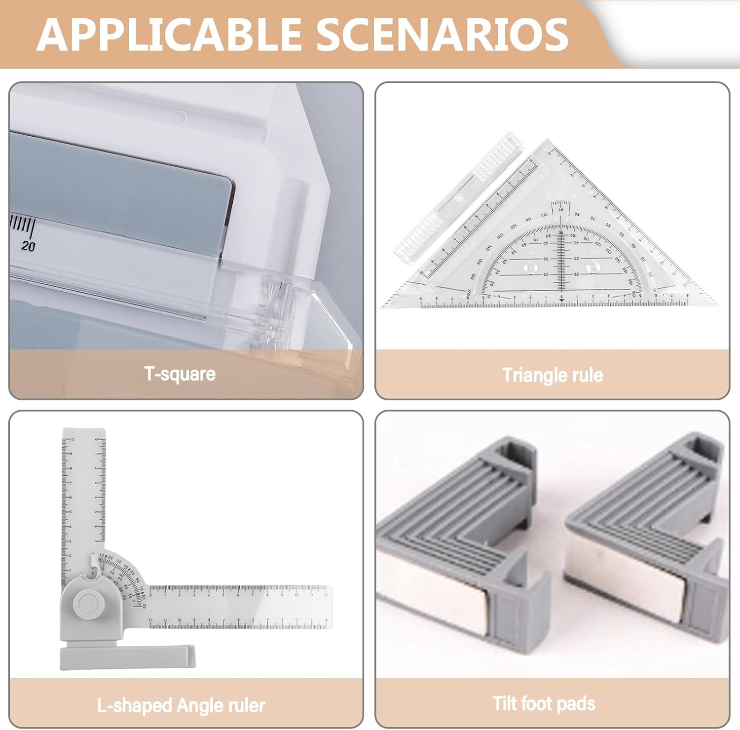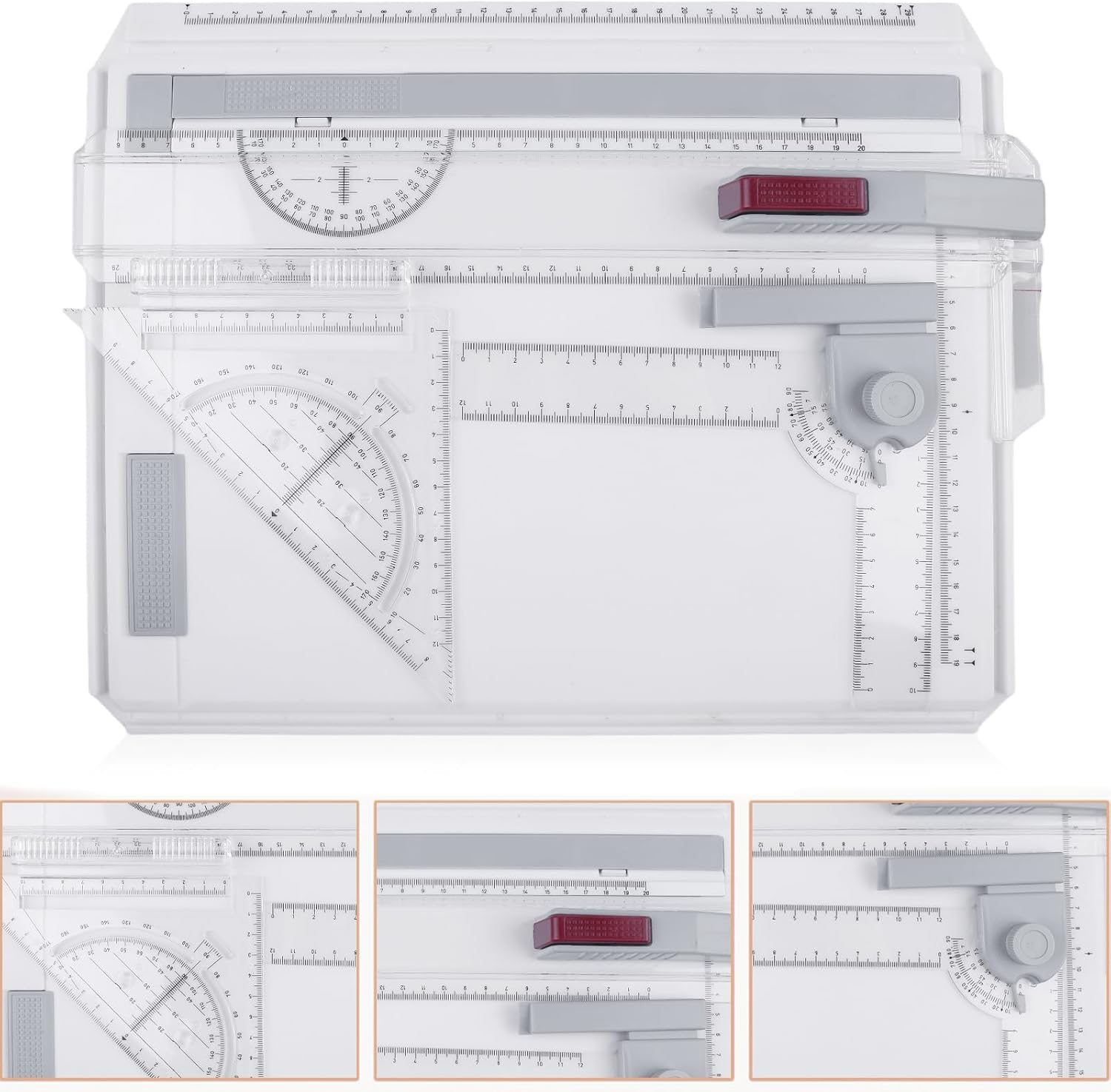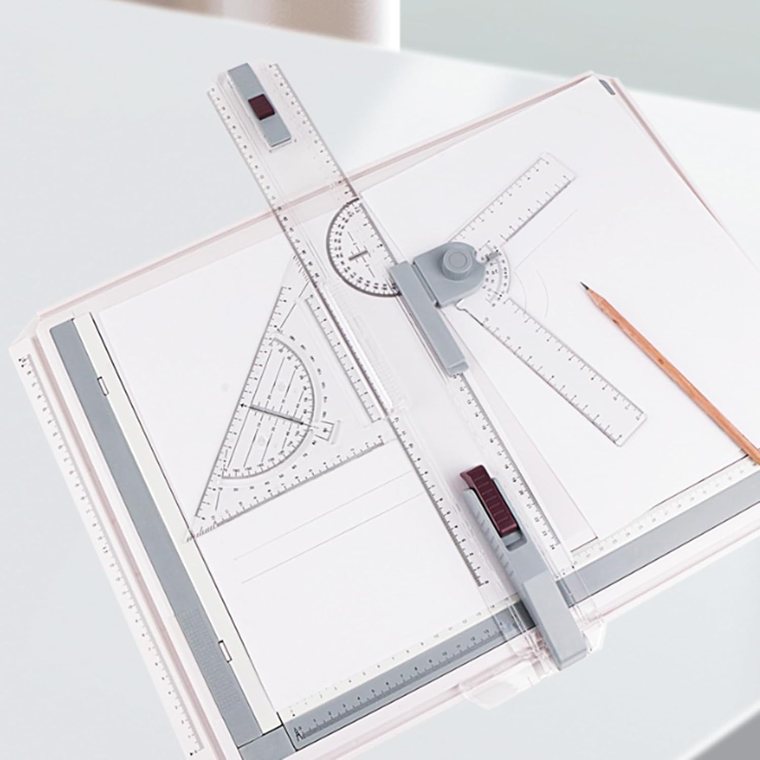 - 【A4 Zeichenbrett Set】Es handelt sich um ein komplettes A4-zeichenplatte -Set, Grösse ca. 37 X 29cm, kommt mit einem T-Lineal, L-Lineal, Winkelmesser und Zeichenbrett. Für eine Vielzahl von Designprojekten steht eine grosse Auswahl an Zubehör zur