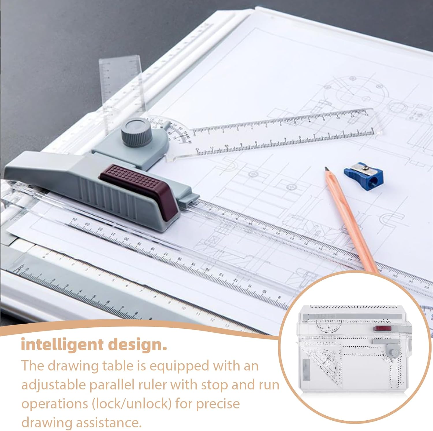 - 【DIN Zeichenplatte】DIN A4-Zeichenbrett in der Nut verschiebbar und kann durch die Fingerknöpfe an beiden Enden arretiert werden. In der Ecke befindet sich ein Locator, was eine gute Kontrolle und Ausrichtung des Papiers ermöglicht