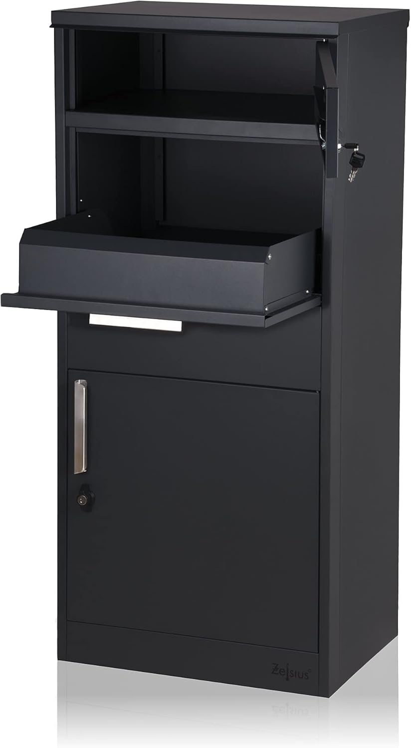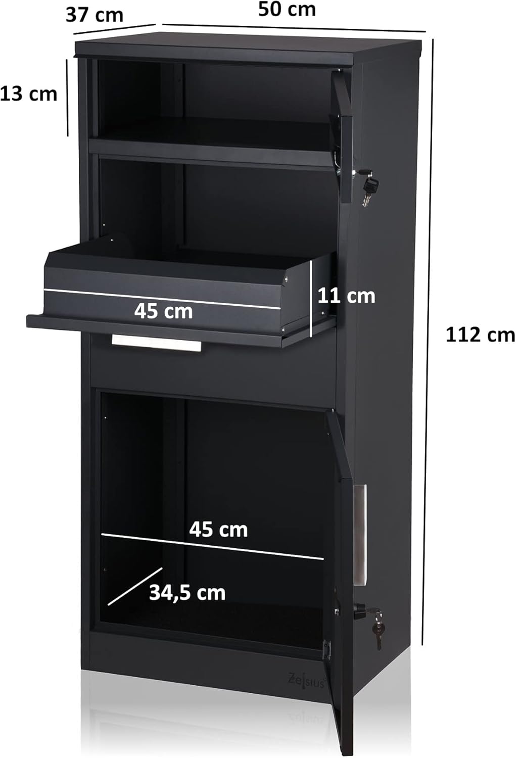 Zelsius Briefkasten mit Paketfach Neptun | pulverbeschichteter Stahl mit Edelstahl Elementen | RAL70