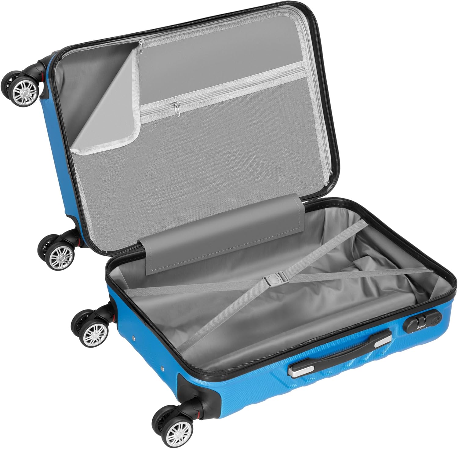Zelsius Koffer Set 3 Stück, Blau | ABS Hartschalenkoffer mit Zahlenschloss, Doppelrollen und Innen T