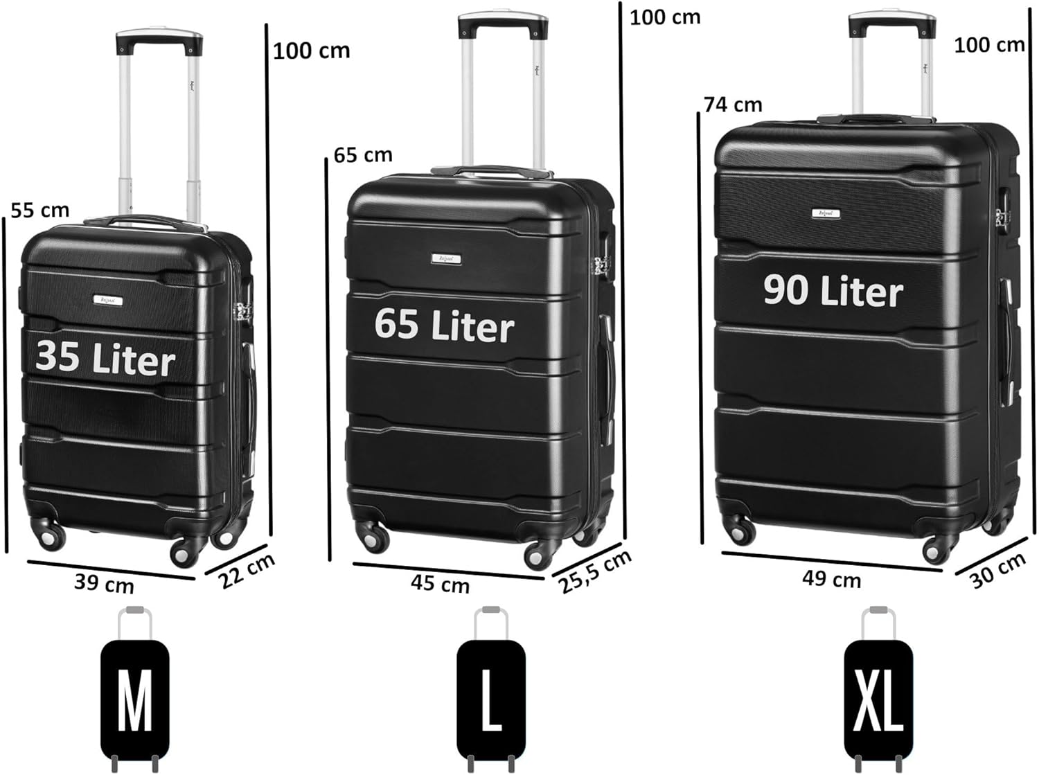 - SET | Das 3-teilige Koffer Set mit verschiedenen Grössen ist das perfekte Set für jede Reise. Egal ob für eine Fernreise (Grösse XL), eine Bahn-/Autoreise (Grösse L) oder einen Wochenendtrip mit Handgepäck (Grösse M), für jede Gelegenheit den