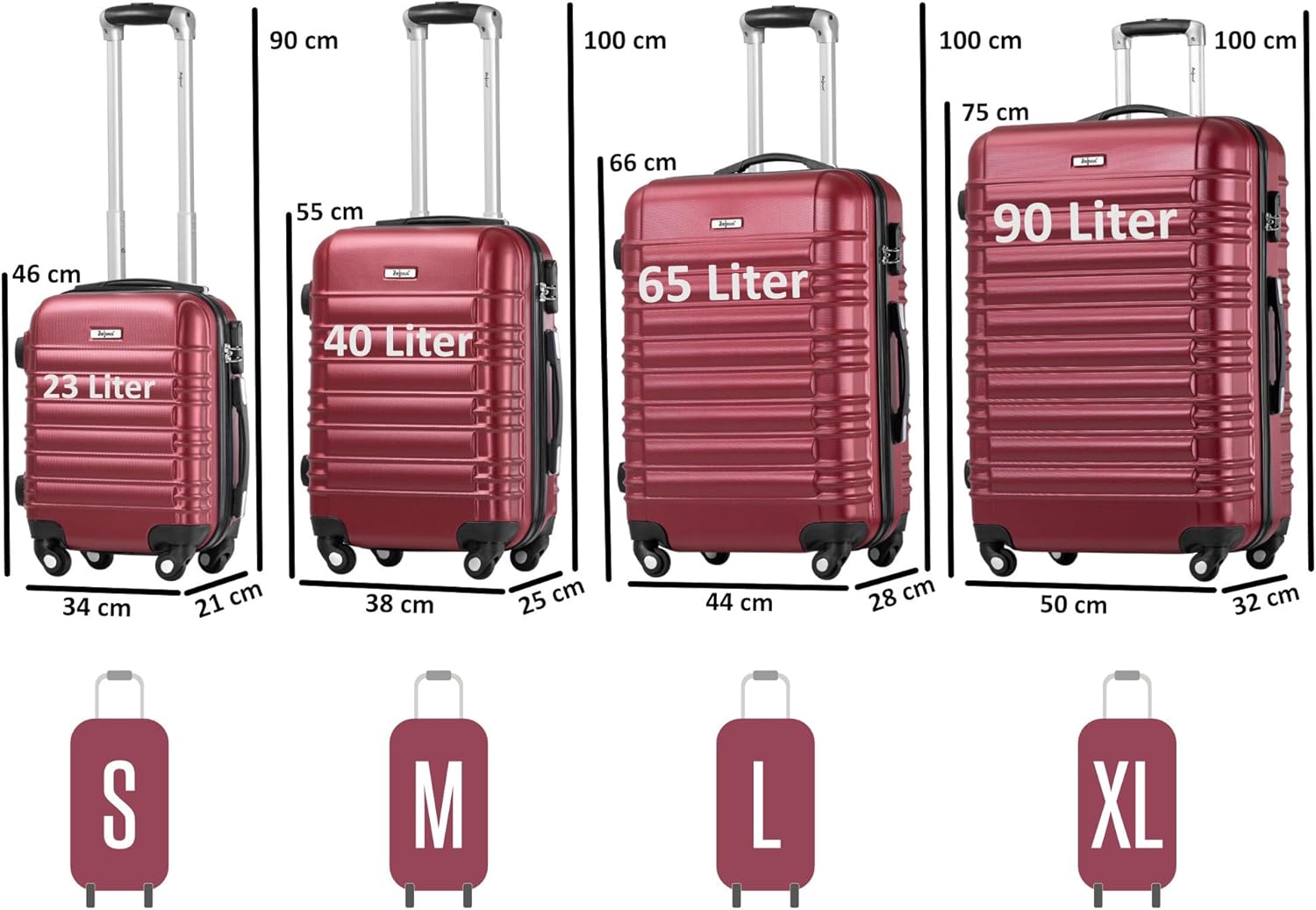 - SET | Das 4-teilige Koffer Set mit verschiedenen Grössen (16", 20", 24" und 28") ist das perfekte Set für jede Reise. Egal ob für eine Fernreise (Grösse XL), eine Bahn-/Autoreise (Grösse L), einen Wochenendtrip (Grösse M) oder für Tagestrips bzw.