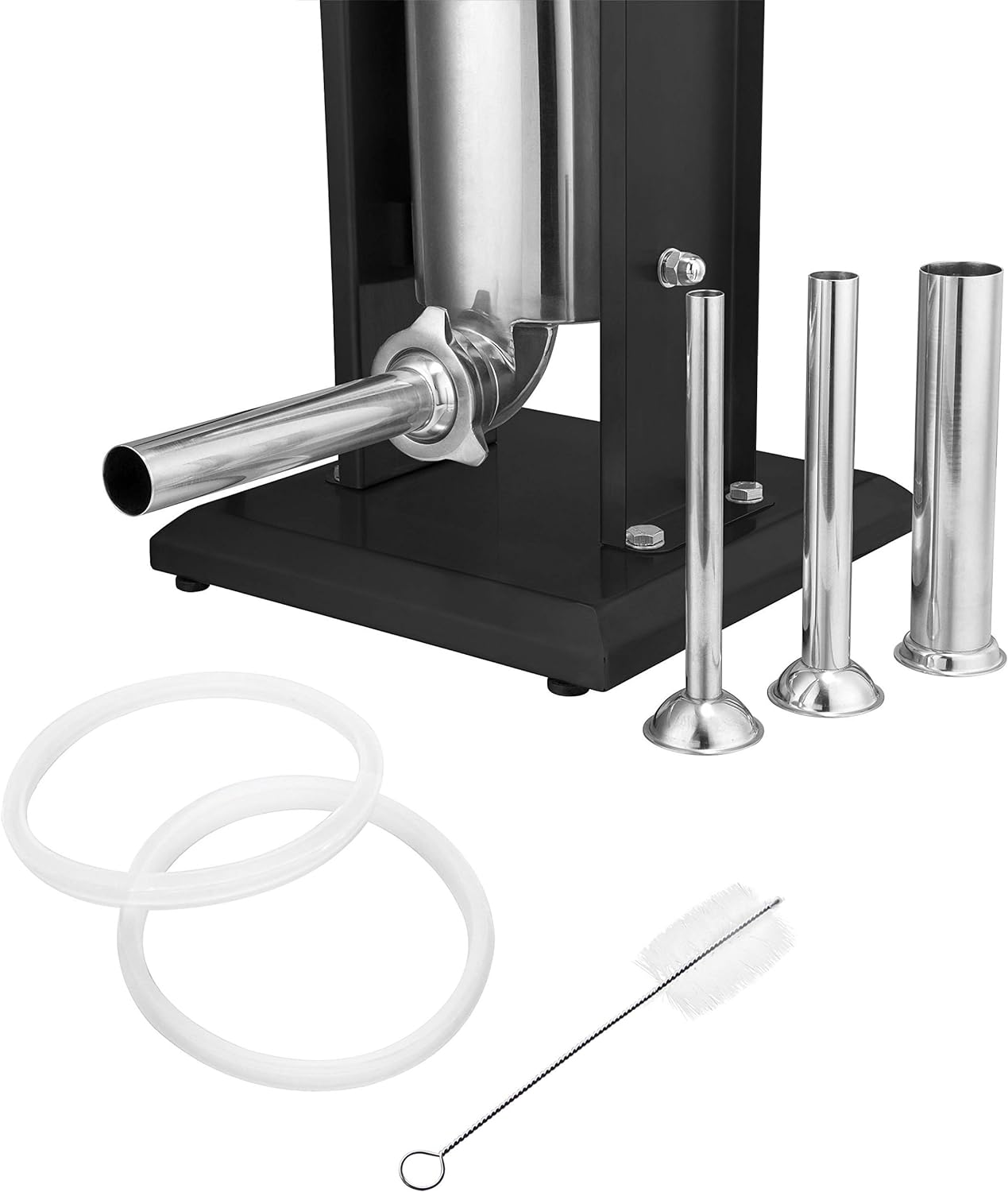 - BESTE QUALITÄT I Mit der Handkurbel wird der Kolben betätigt, welchen die Wurstmasse durch das Füllrohr presst. Der Edelstahlkolben ist mit einem Belüftungsventil ausgestattet.