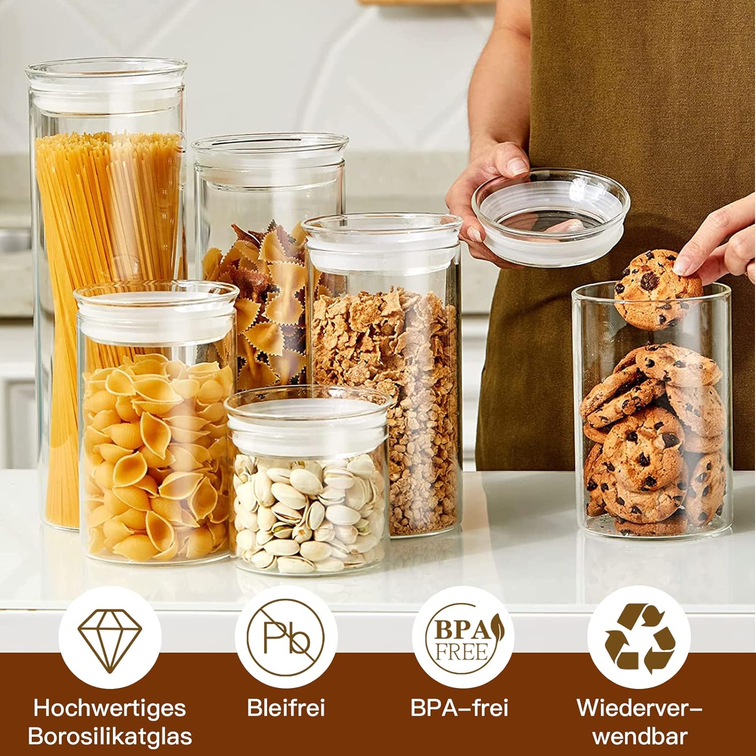- MODERNES KÜCHENDEKOR:Dieser borosilikatglas vorratsdose ist sehr transparent. Sie können das Lebensmitteln Innere erkennen. Er sieht stilvoll aus und ist eine grossartige Dekoration für Ihre küchentheke.Nicht nur zu Hause, sondern auch ist für