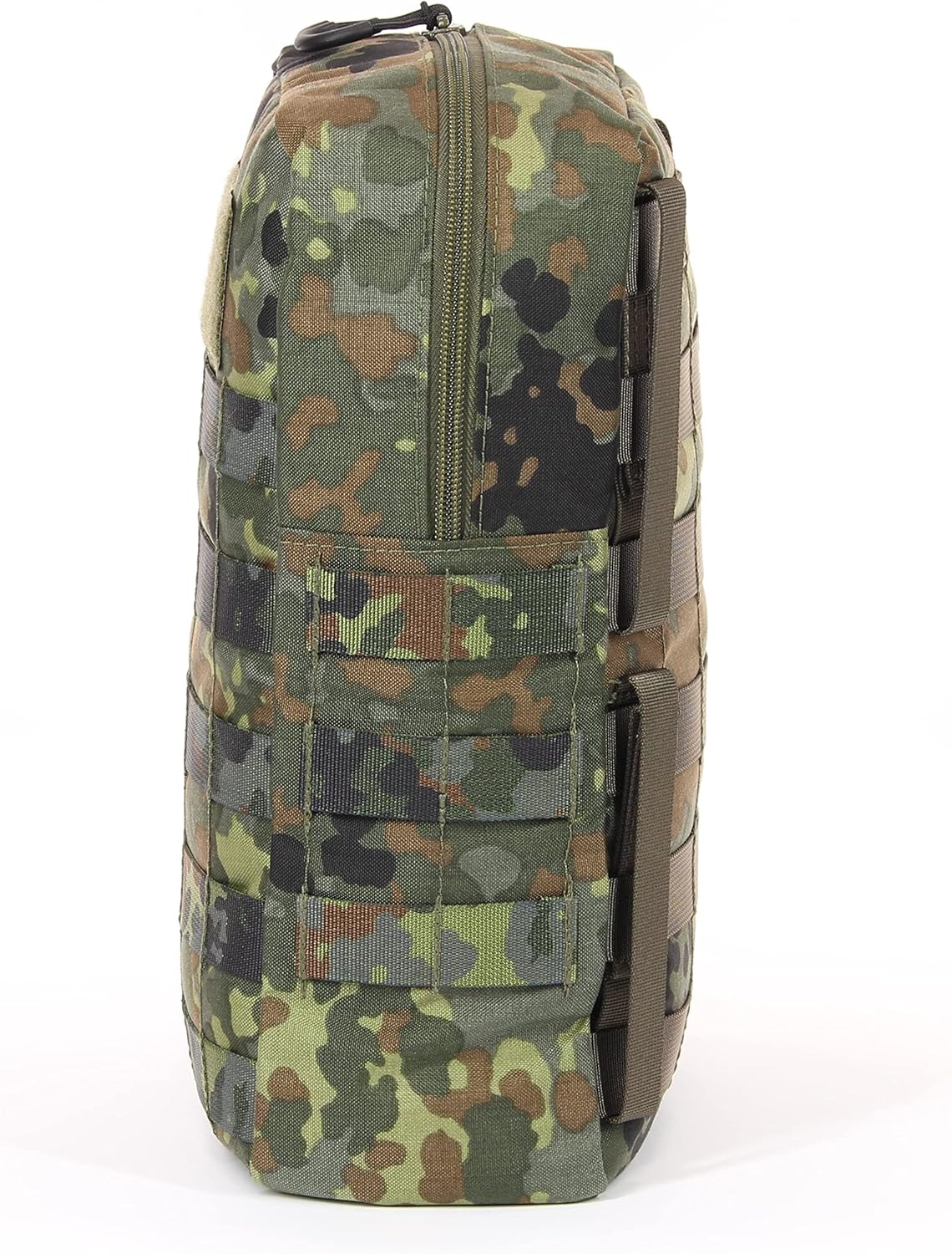 - Die taktische Tasche hat robusten Doppel Reissverschluss, der mit einer grossen Ziehhilfe ausgestattet ist. Auf der Vorderseite ist eine Patchfläche aufgenäht. Am Boden befindet sich eine Ablauföse.