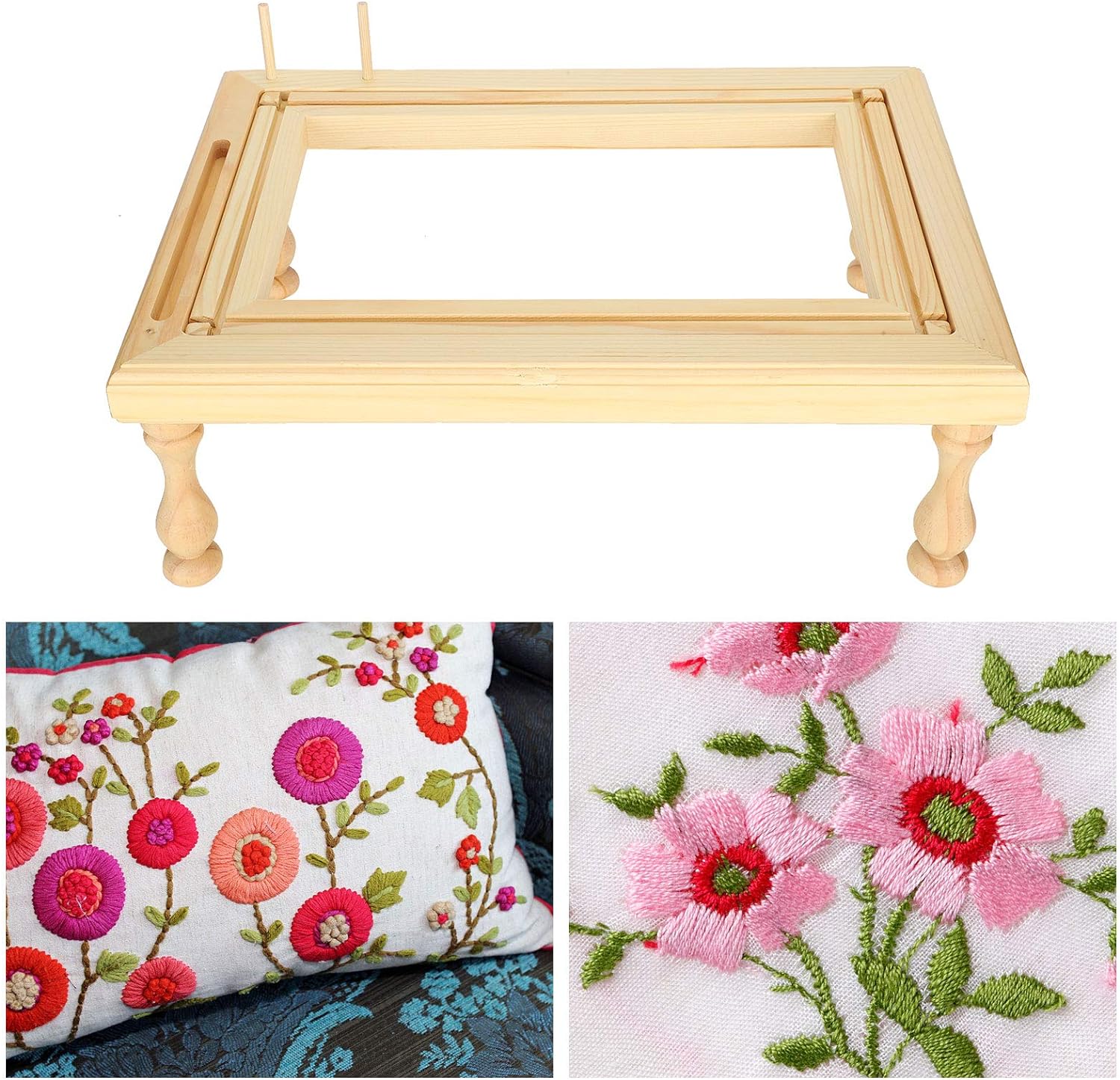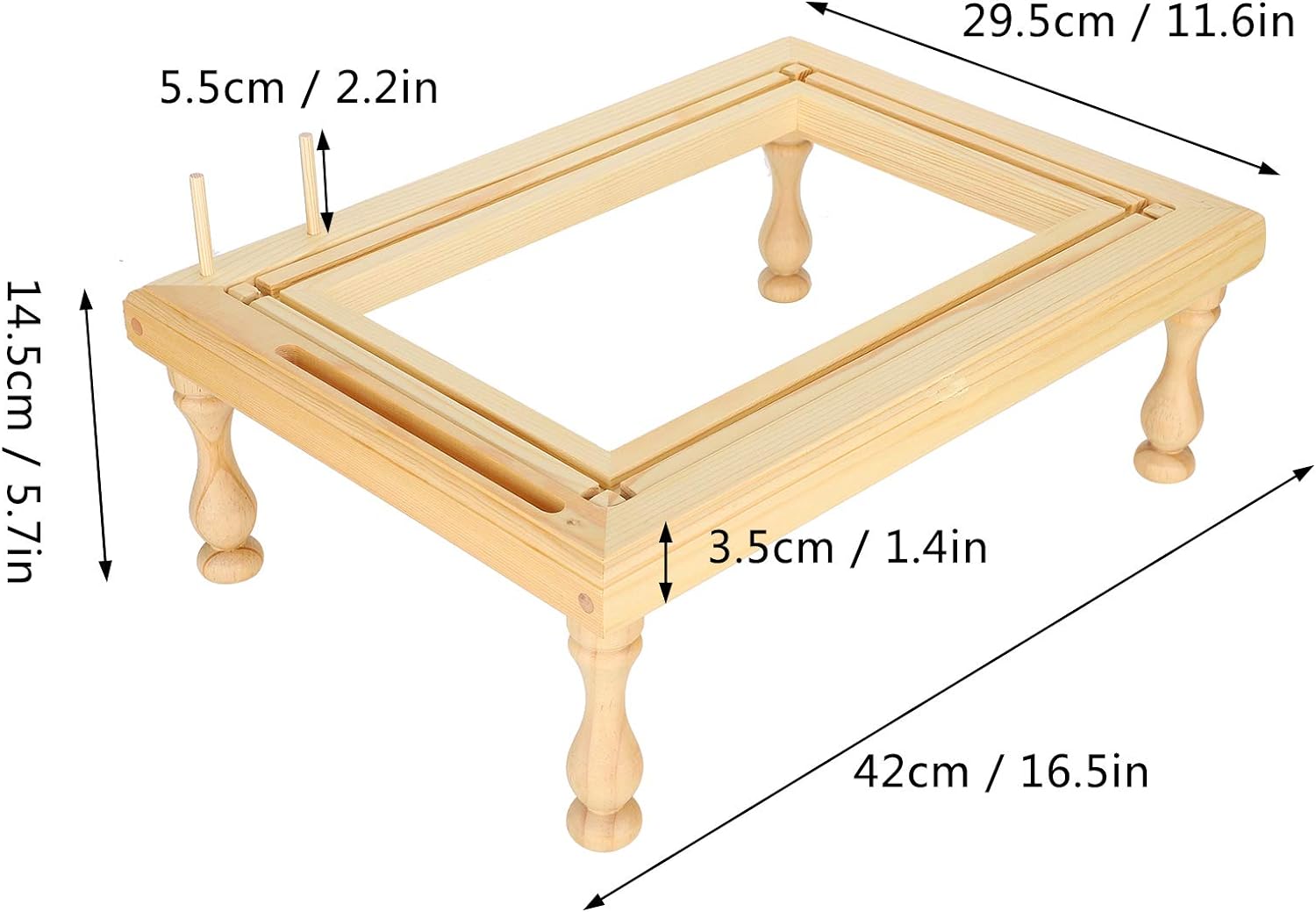 - 【Angemessene Grösse】 Die Grösse des Holzrahmens beträgt 16,5 x 11,6 x 1,4 Zoll und die Gesamthöhe der vierbeinigen Tischbeine 5,7 Zoll, was sehr gut für Leute geeignet ist, die Stickerei und Heimwerken mögen.
