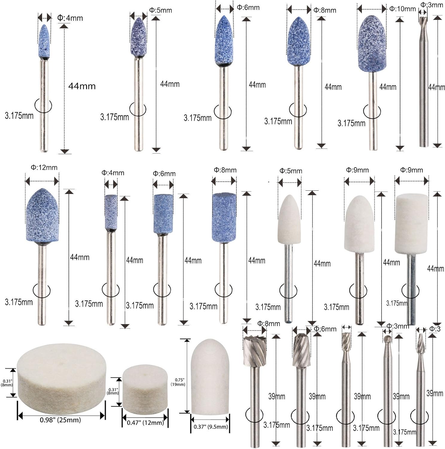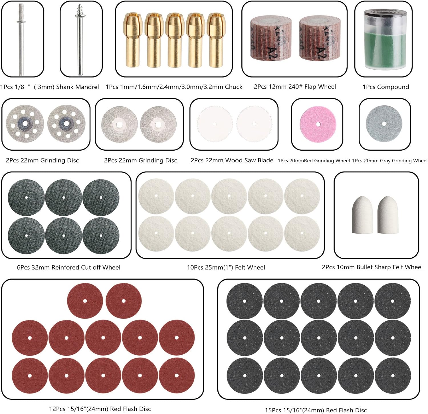 ZFE 217tlg Mehrzweck Zubehörset, Multifunktionswerkzeuge mit 3mm Schaft zum Schneiden, Bohren, Gravi