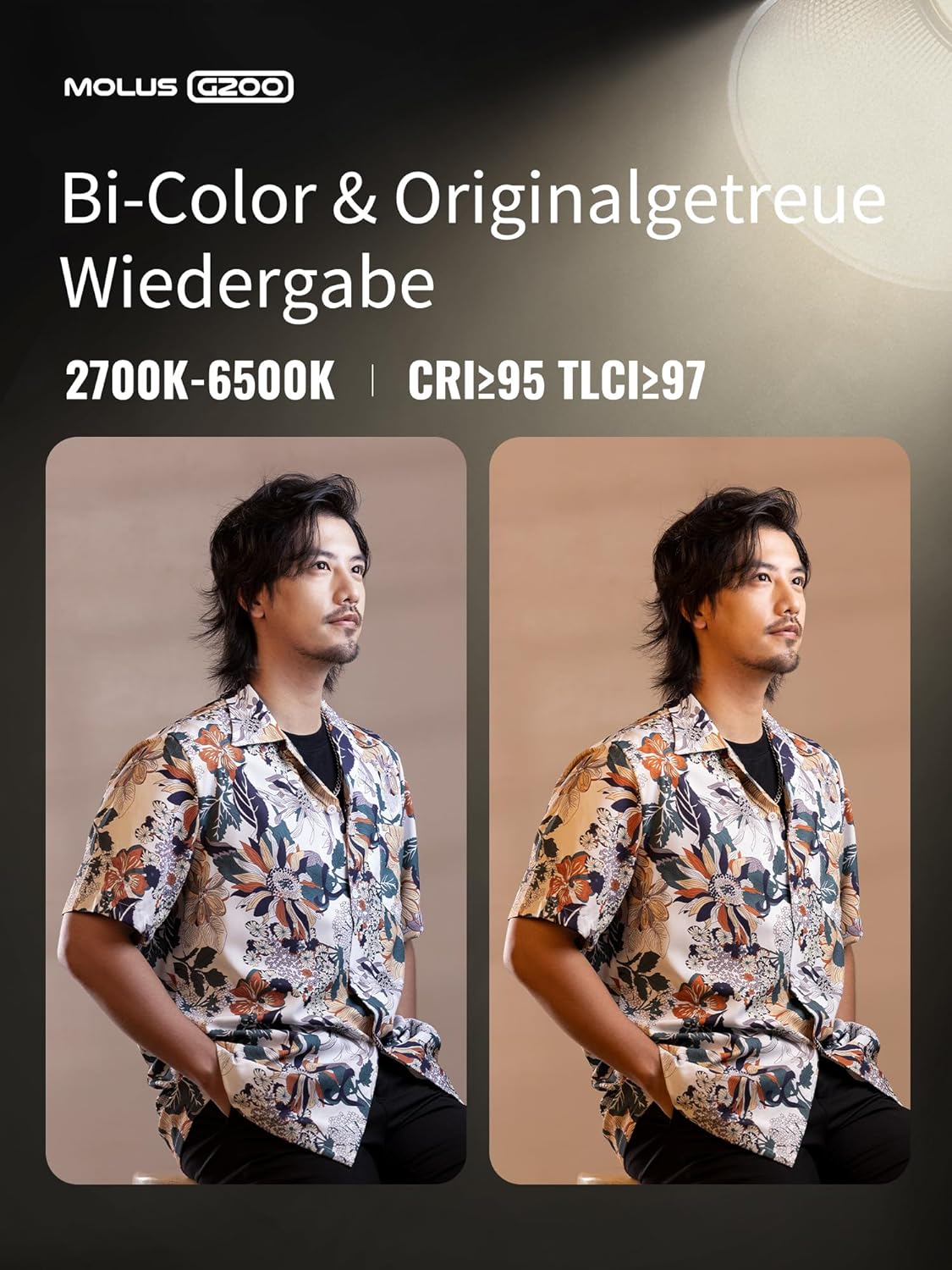 • [ Nahtloses Dimmen ] Die G200 Videoleuchte unterstützt die nahtlose CCT- und DMI-Anpassung mit fünf integrierten Voreinstellungen für einfache Farbtemperatur- und Helligkeitsanpassungen per Knopfdruck. Noch nie war es so mühelos und einfach, die