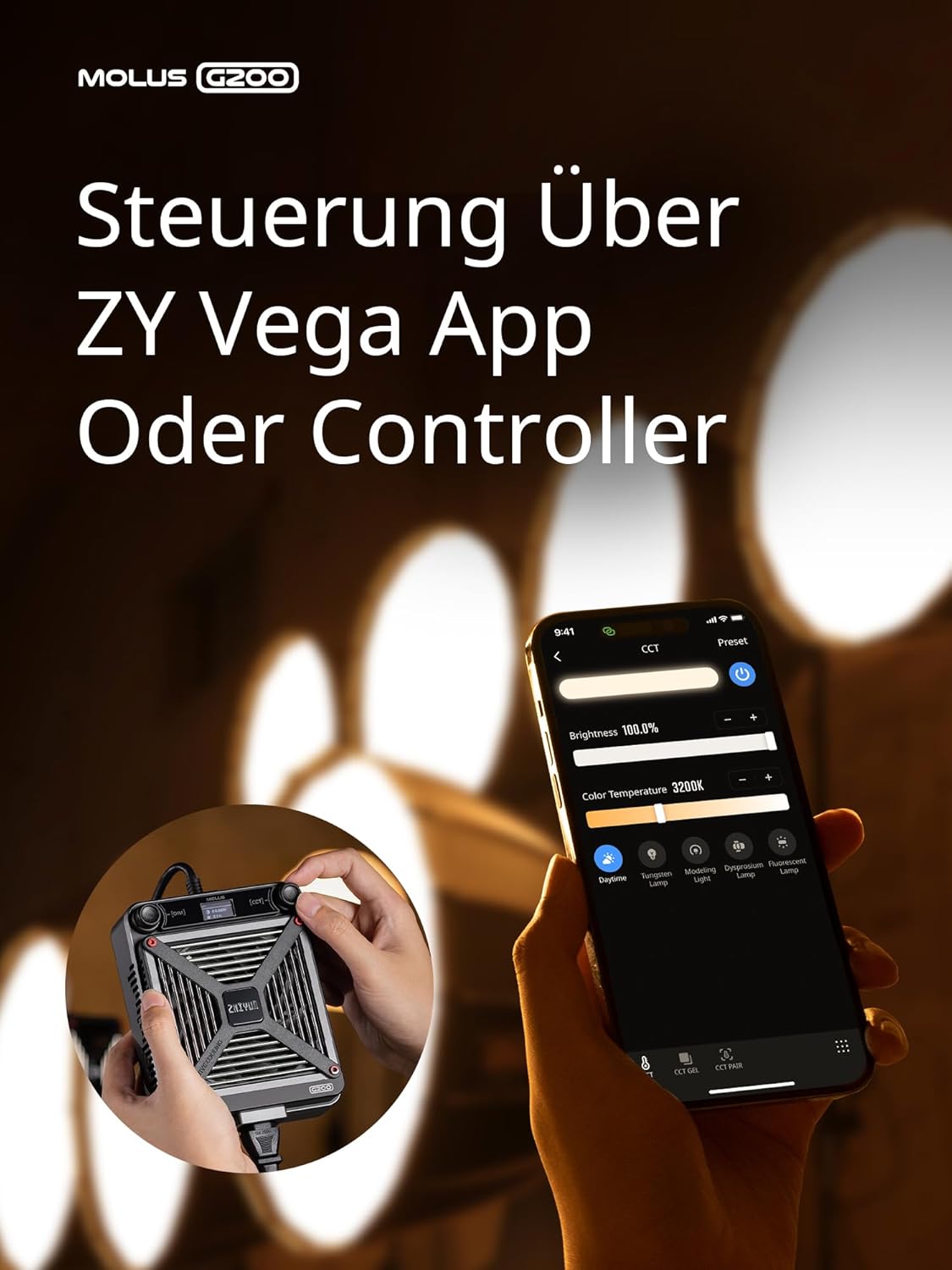 • [ Ihr Persönlicher Beleuchtungsassistent ] Die ZY Vega App unterstützt Bluetooth Mesh Networking und ermöglicht das Dimmen aus der Ferne und das schnelle Umschalten von Voreinstellungen. Professionelle Beleuchtung auf jedem Filmset oder in jedem