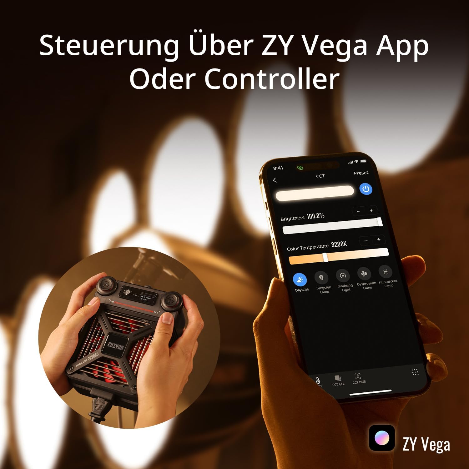- [ Ihr Persönlicher Beleuchtungsassistent ] Die ZY Vega App unterstützt Bluetooth Mesh Networking und ermöglicht das Dimmen aus der Ferne und das schnelle Umschalten von Voreinstellungen. Professionelle Beleuchtung auf jedem Filmset oder in jedem