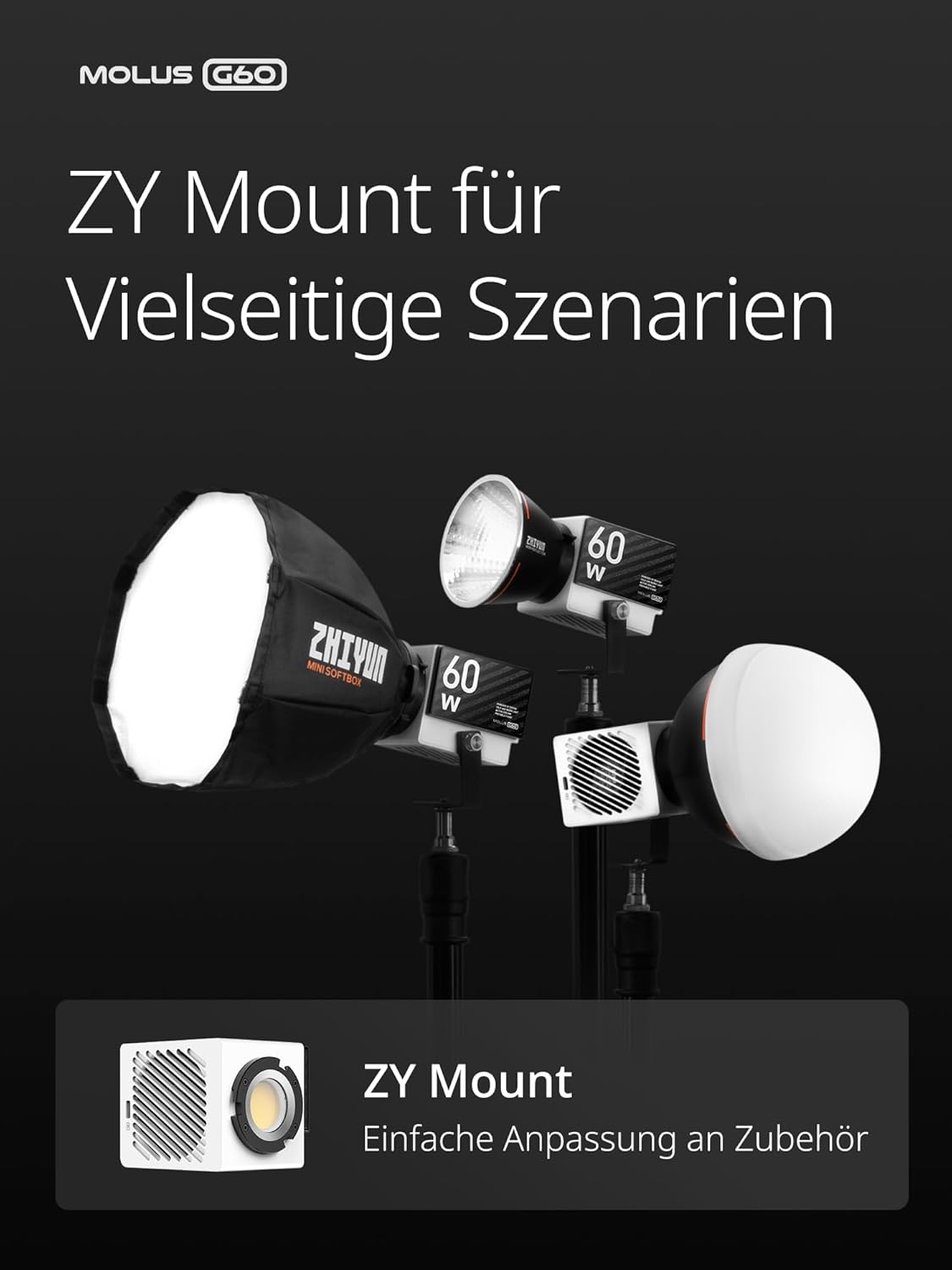 - [ Leicht und kompakt ] ZHIYUN MOLUS G60 ist eine äusserst tragbare COB Videoleuchte, die nur 300 g wiegt und so klein wie ein Zauberwürfel ist, wodurch sie leicht zu transportieren und in einer Vielzahl von Umgebungen zu verwenden ist.