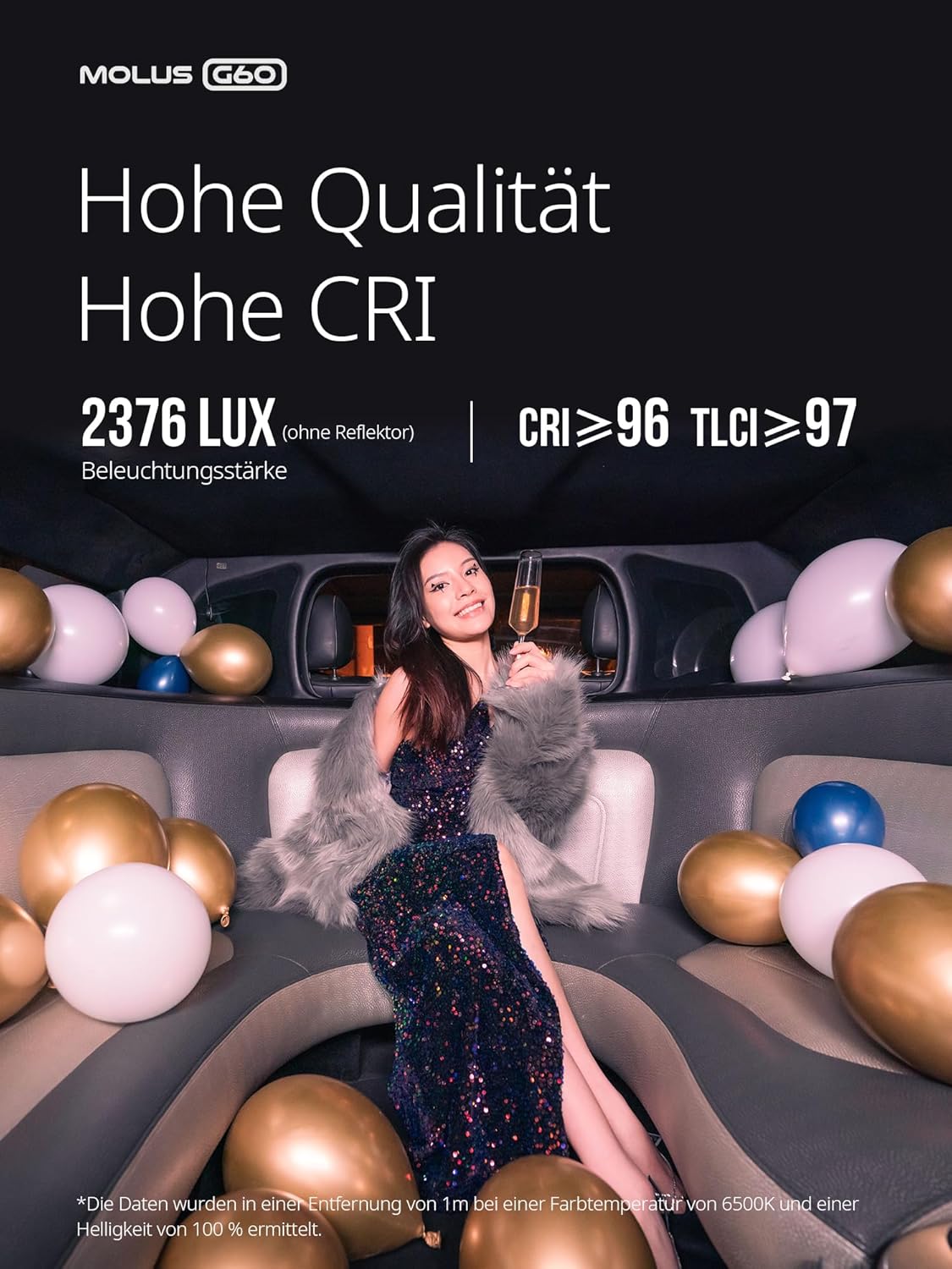 - [ Hochentwickeltes Kühlsystem ] Die G60 Videolicht verfügt über das DynaVort-Kühlsystem, das mit Hilfe von Kreisel-Kühlkörpern und FOC-Lüftern eine Überhitzung verhindert und eine zuverlässige Leistung in allen Situationen gewährleistet.