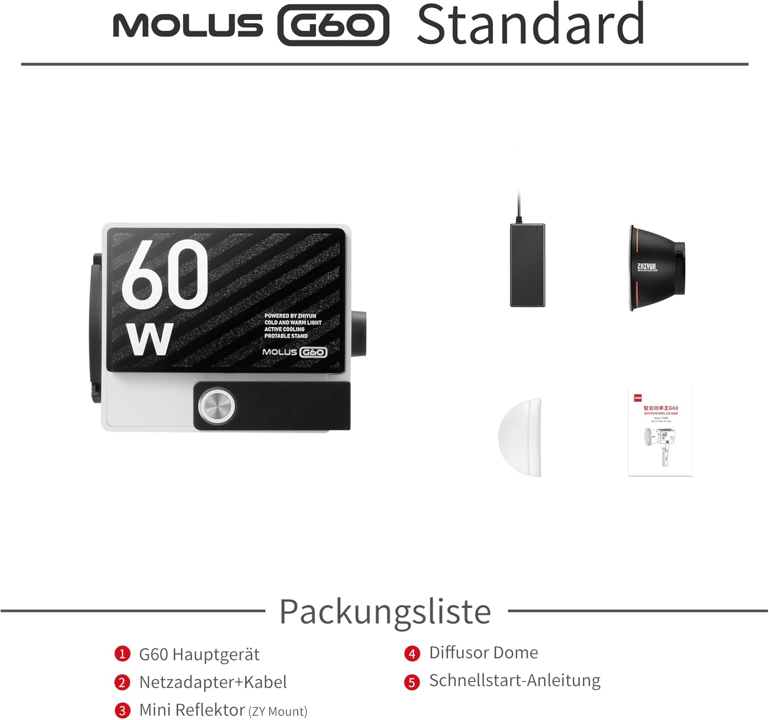 - [ Leicht und kompakt ] ZHIYUN MOLUS G60 ist eine äusserst tragbare COB Videoleuchte, die nur 300 g wiegt und so klein wie ein Zauberwürfel ist, wodurch sie leicht zu transportieren und in einer Vielzahl von Umgebungen zu verwenden ist.