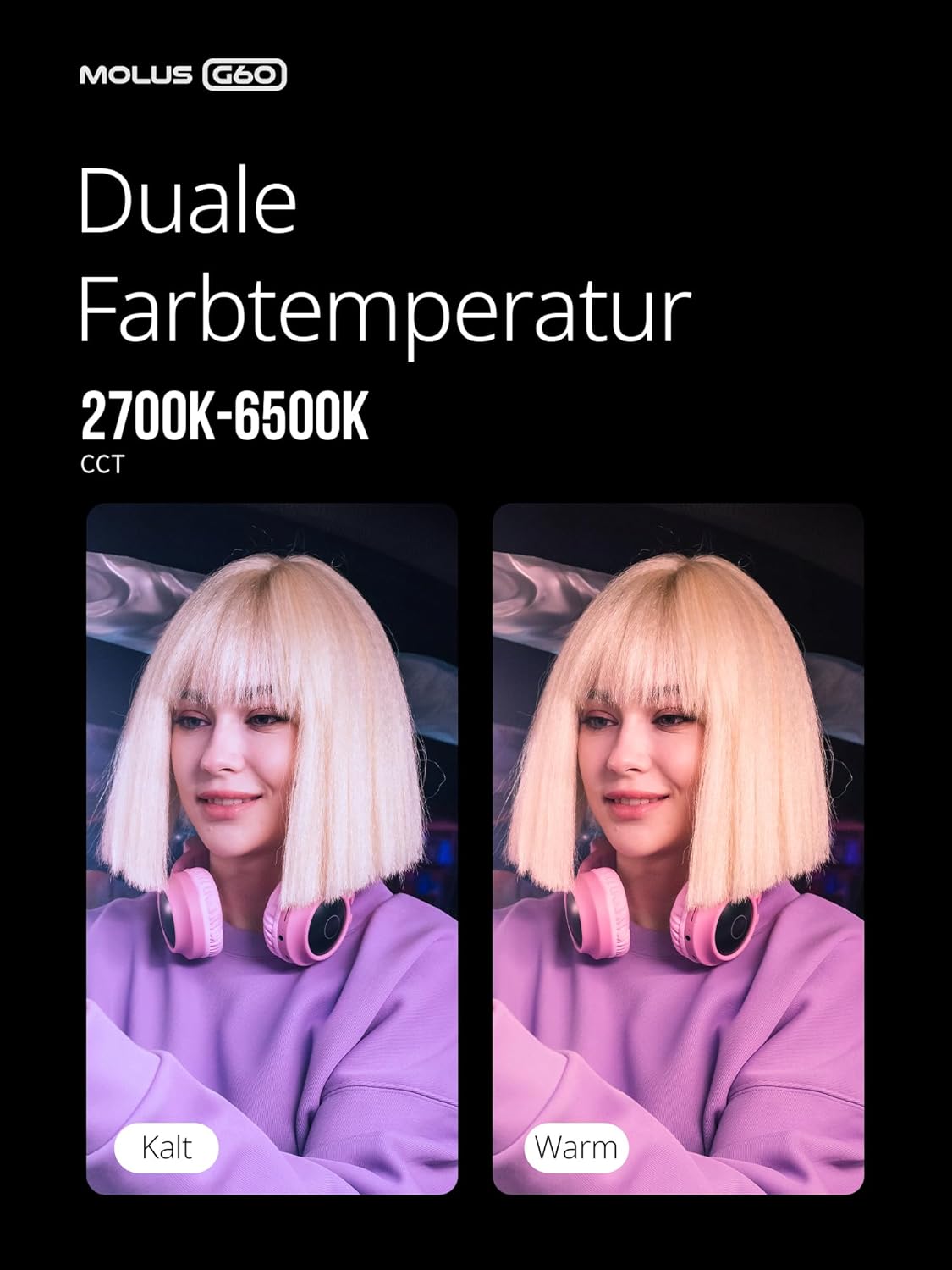 - [Hohe Farbwiedergabe ] ZHIYUN G60 streaming Licht bietet eine exzellente Farbwiedergabe mit CRI≥96 und TLCI≥97, so dass Sie Farbtemperatur und Helligkeit für optimale Ergebnisse einfach einstellen können. Farbtemperaturbereich: 2700K-6500K, mit dem