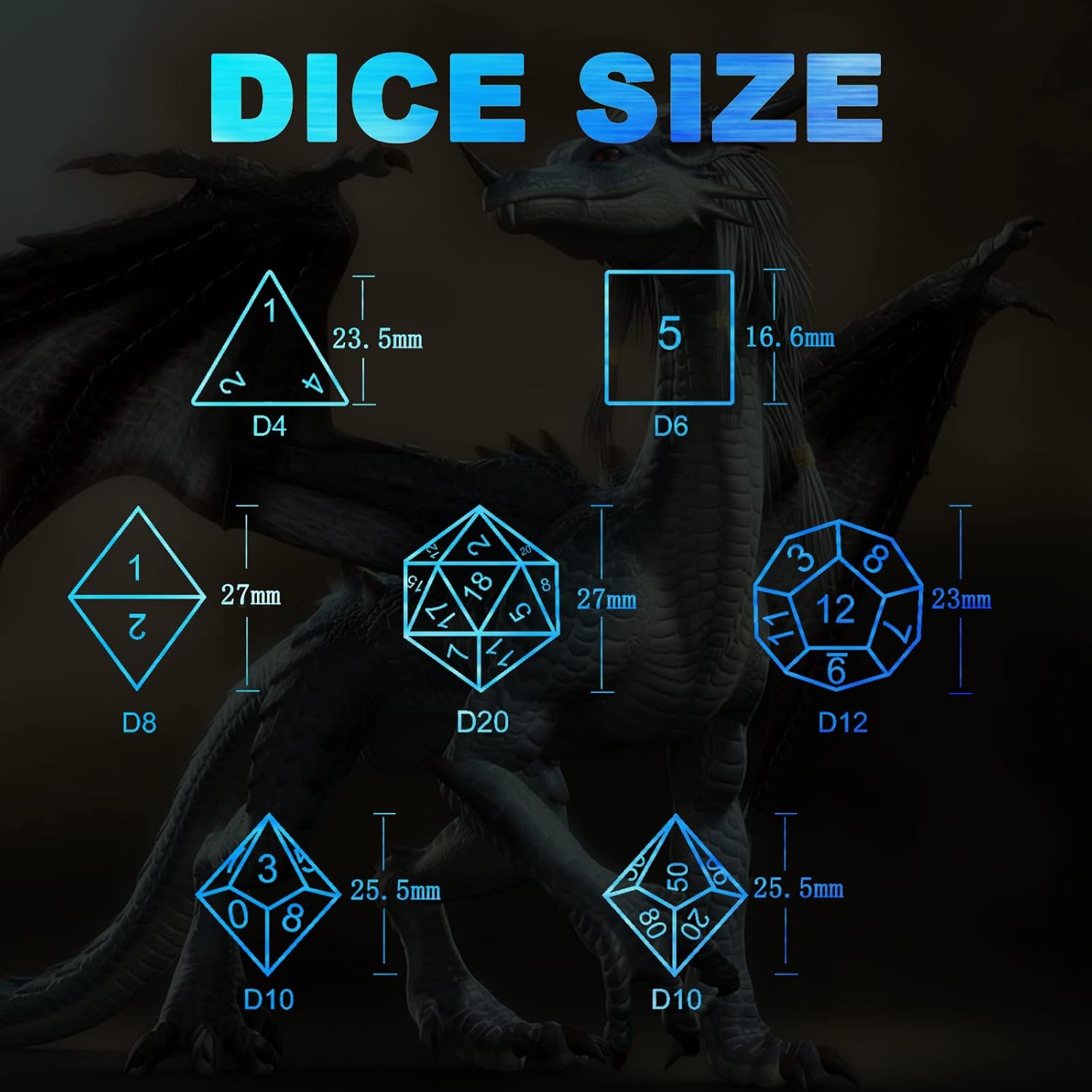 • 🎲【D&D Würfelset】Für dnd Würfelset besteht aus 7 polyhedrische würfel, einschliesslich D4, D6, D8 und D10 (doppelte Präzision), D9 (ungerade Zahl), D12 und D20. Sie können bereit sein, d&d oder Tischspiele auf ein neues Niveau zu bringen