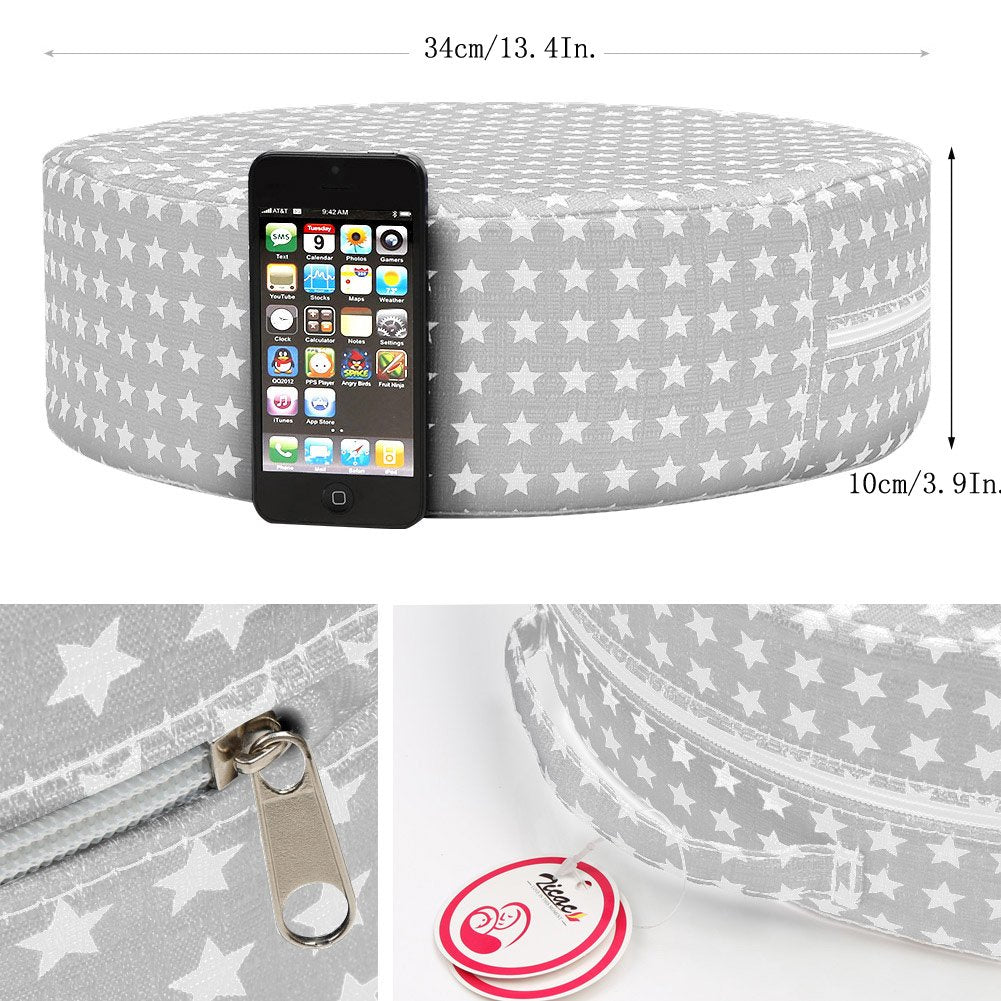- Material: Linomple + hoher Dichte Schwamm. Praktische Seitentaschen für Babys Spielzeug,Rund--Grösse: 34*34*10cm / 13.4*13.4*3.9 ''. - Rückseite mit anti-rutsch Material - 10cm hoch.