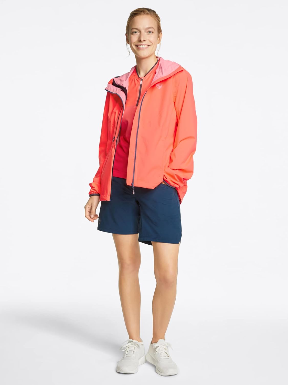 - Materialzusammensetzung Obermaterial: 1. 100% Polyester; 2. 93% Polyester, 7% Elasthan;
