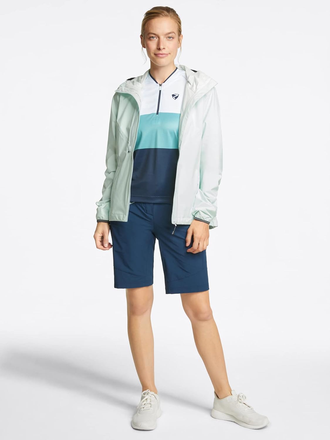 PRODUKTBESCHREIBUNGEN Die funktionelle ZIENER Damen Regenjacke NARELA LADY ist der optimale Begleiter auf sämtlichen Radtouren: Die wasserdichte, winddichte und atmungsaktive AQUASHIELD® Membran sorgt bei Wind und Wetter für ein angenehmes, trockenes Klima (Wassersäule 15.000mm/Atmungsaktivität 15.000g/m²/24h). Zudem sind die Nähte vertapt und die Front-Reissverschlüsse wasserdicht. Dank der festen Kapuze mit hohem Kragen ist man jederzeit vor Regen geschützt. Der elastische Abschluss an Ärmel und der Kapuze sowie die Weitenregulierung an Saum und Kapuze sorgen für den perfekten Sitz. Das elastische Material der Jacke garantiert optimale Bewegungsfreiheit. Die Ventilationsmöglichkeiten auf der Vorder- und Rückseite spenden die nötige Belüftung. Zwei Seitentaschen mit Reissverschluss sorgen für genügend Stauraum für die wichtigsten Dinge. Die Jacke ist mit dekorativen reflektierenden Designelementen versehen. Dank der umweltfreundlichen Imprägnierung ist das Produkt PFC frei.