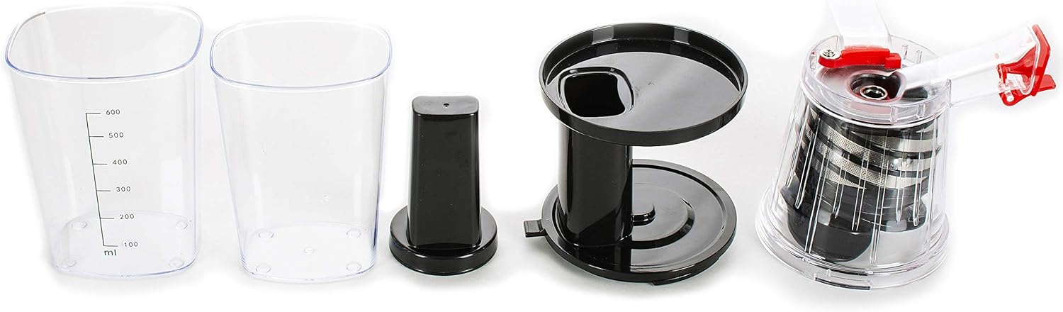 - Highlights: Leistung: 200 Watt Für alle Obst und Gemüsesorten geeignet Saftbehälter mit 600 ml Kapazität Grosser Einfüllschacht Sicherheitsverschluss Rostfreie Edelstahlklinge Anti-Rutsch-Gummifüsse Leichte Reinigung - Alle entnehmbaren Teile sind