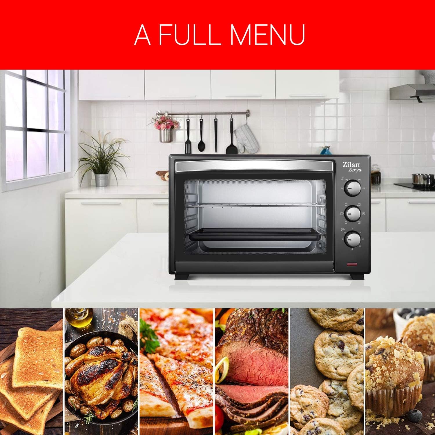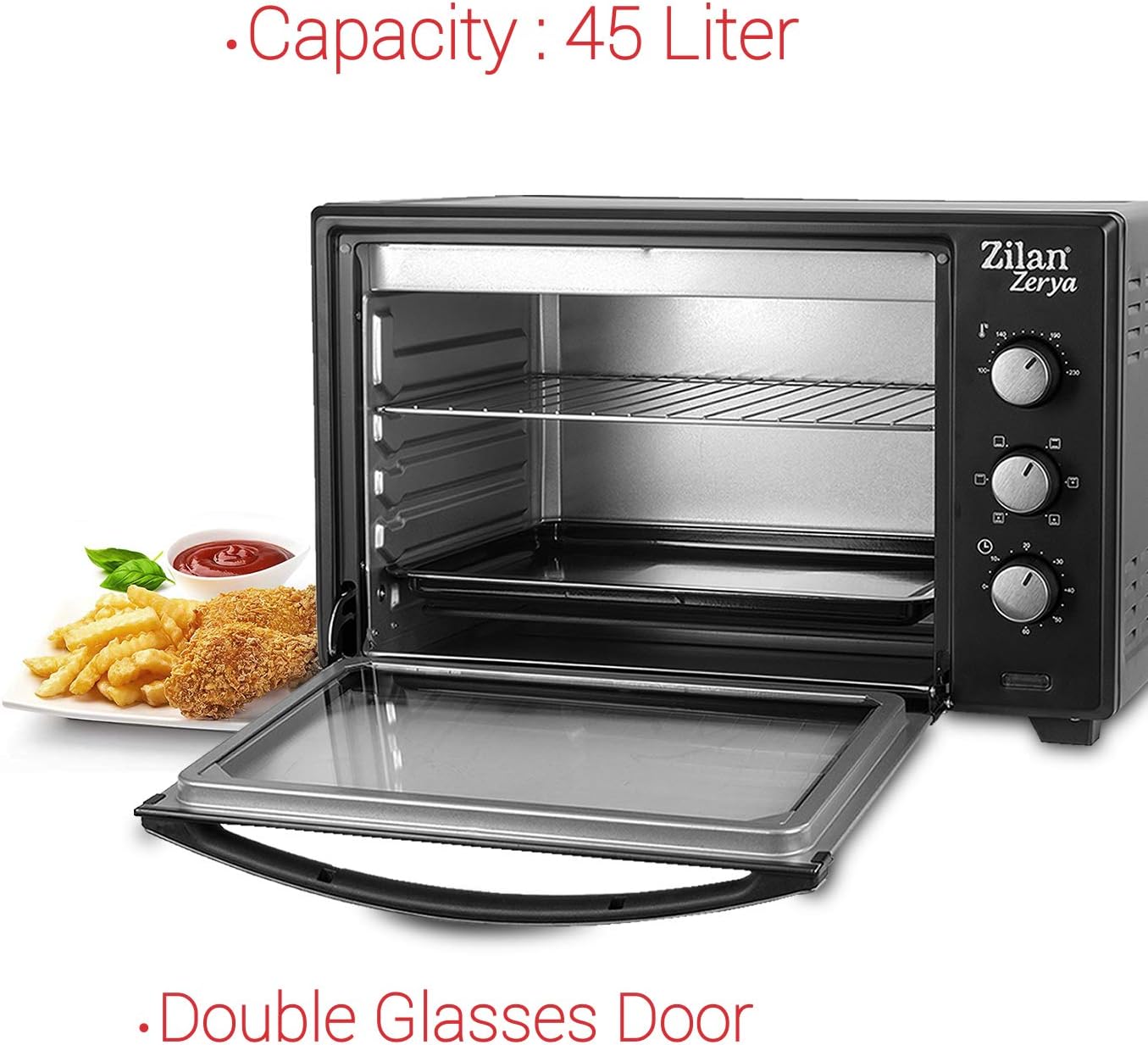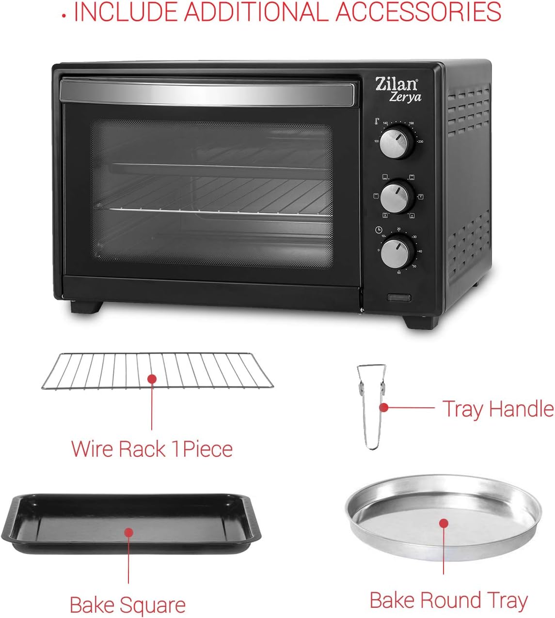 - Zusätzliches Zubehör: quadratische Auflaufform zum Backen 1 Stück, Metallgitter, 1 Stück, Griff des Tabletts 1 Stück, Spannung: 220 V-240 V, 50 Hz/60 Hz, Leistung: 2000 W