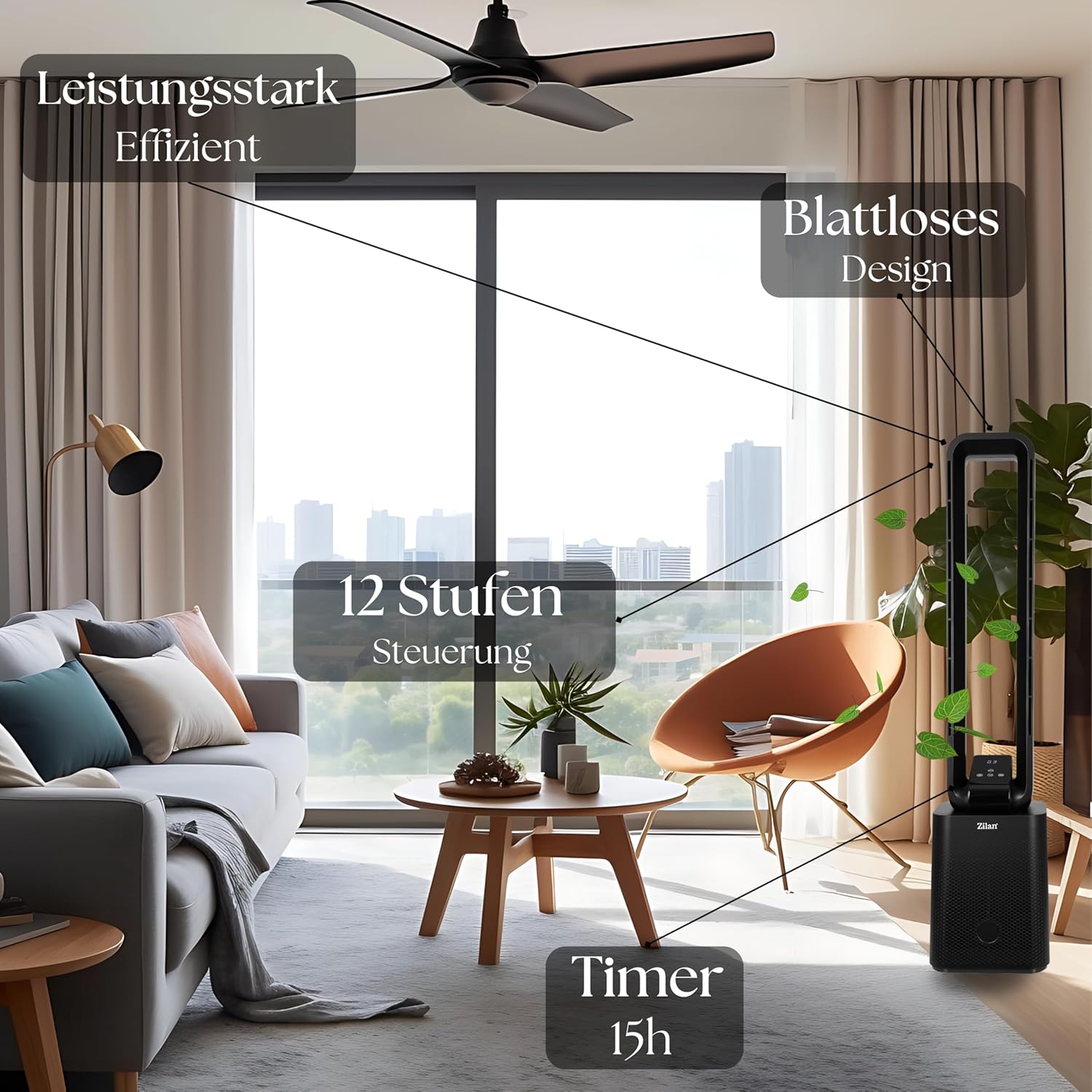 - ◾Blattloser Turmventilator mit modernster BLDC-Motorentechnologie – Leistungsstark, leise und stilvoll◾ Erleben Sie eine neue Dimension von Komfort und Frische mit unserem innovativen blattlosen Turmventilator. Dieses Premium-Gerät vereint