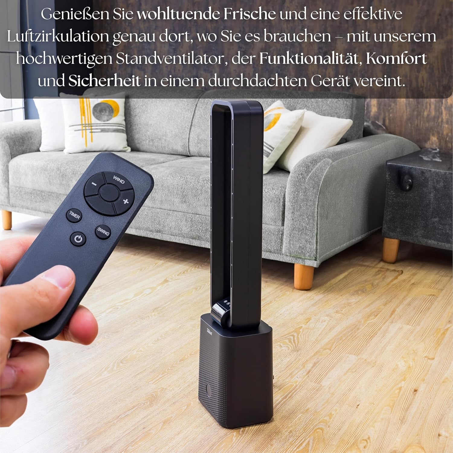 - ◾Oszillation für gleichmässige Luftverteilung◾ Dank der 45° horizontalen Oszillation verteilt der Ventilator die Luft gleichmässig im Raum und sorgt für eine erfrischende Brise in jeder Ecke. Die automatische Schwenkfunktion ist ideal, um