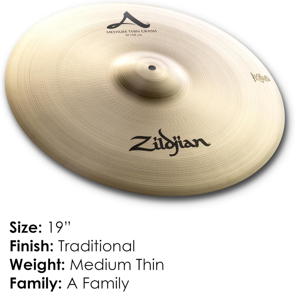 - Die Zildjian Medium Thin Crash-Becken erzeugen ein helles, stärkeres Ende als der standardmässige Zildjian Thin Crash