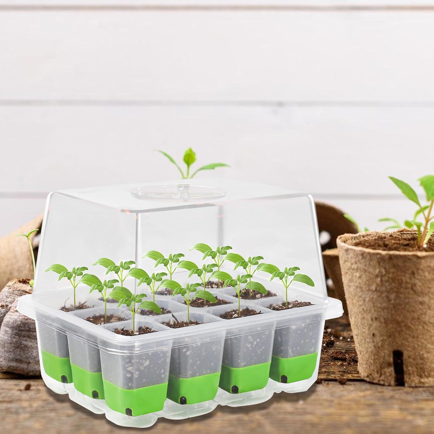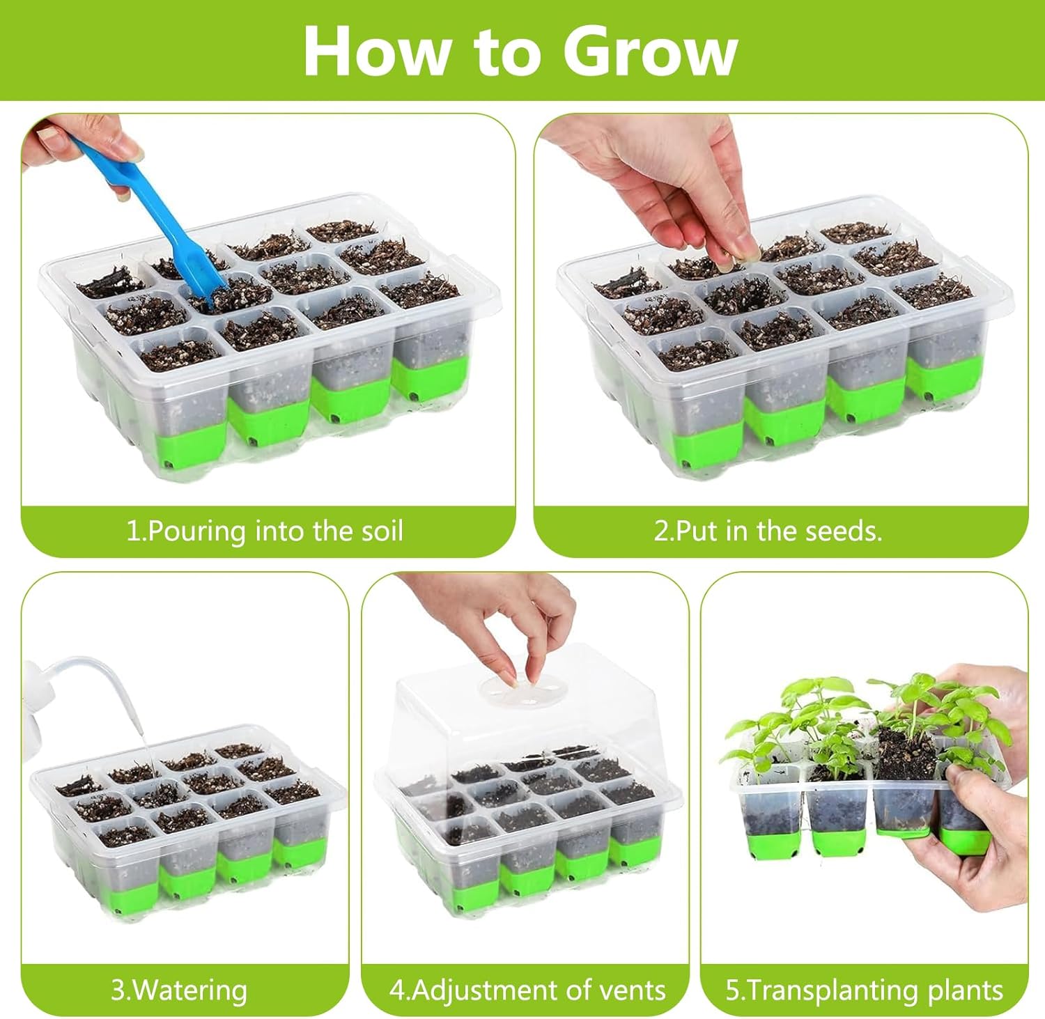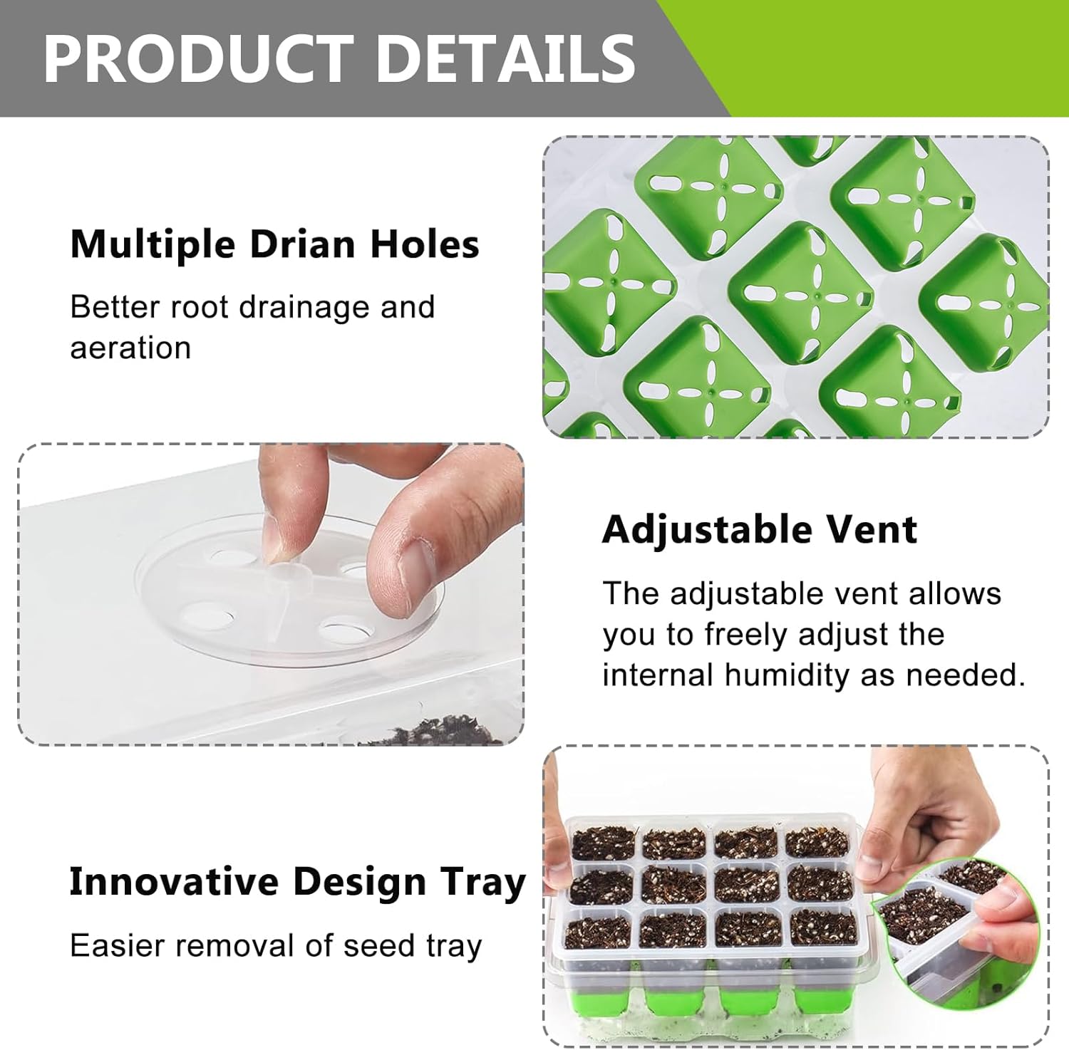 • 🌱【Erhöhte Deckelhöhe】Um ausreichend Platz für das Wachstum von Blumen, Gemüse und anderen Pflanzen zu bieten, und Samenschalen mit Deckel haben verstellbare Belüftungsöffnungen, um die Temperatur und Feuchtigkeit in der Samenschale zu