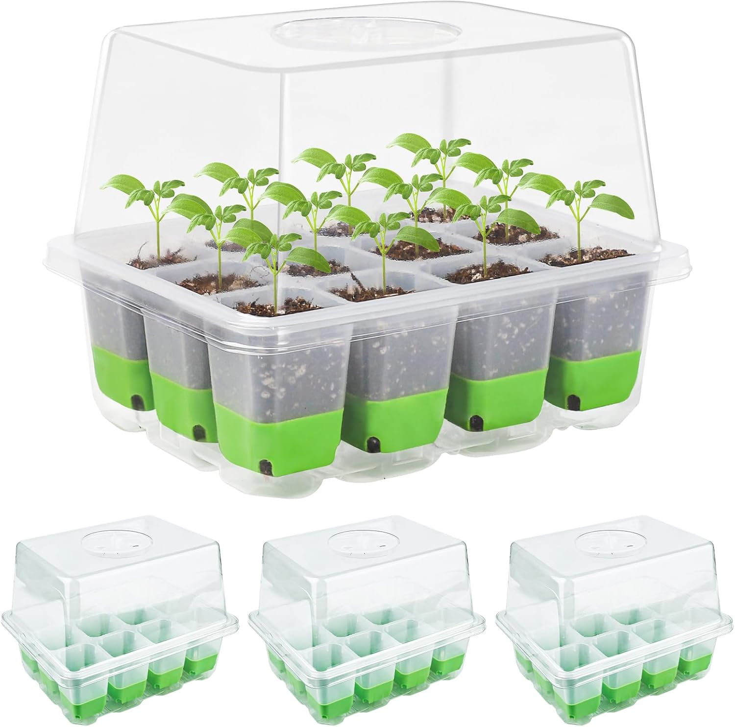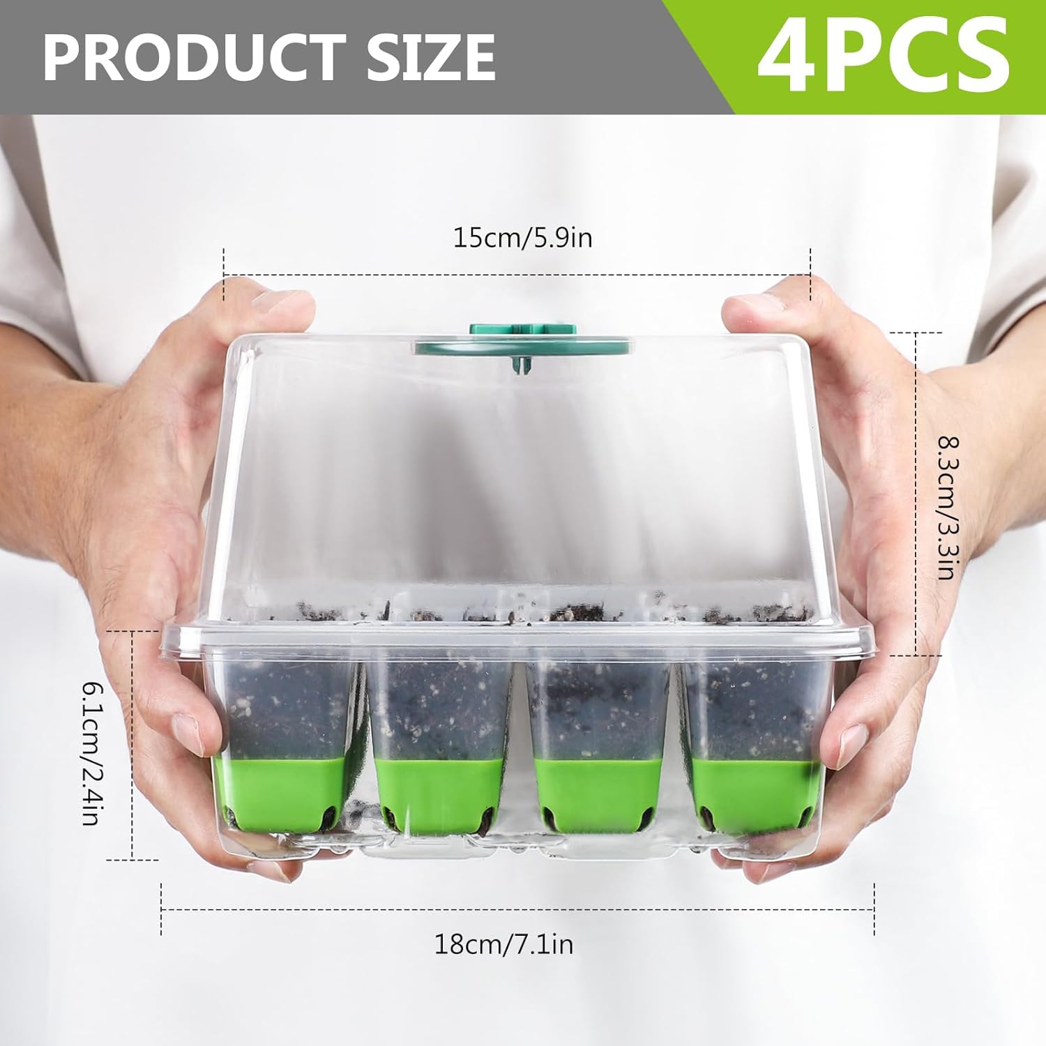 Zimmergewächshaus Anzuchtkasten: Wiederverwendbar Anzuchtplatte Topfplatte 4 Stück 12 Pflanzlöchern,