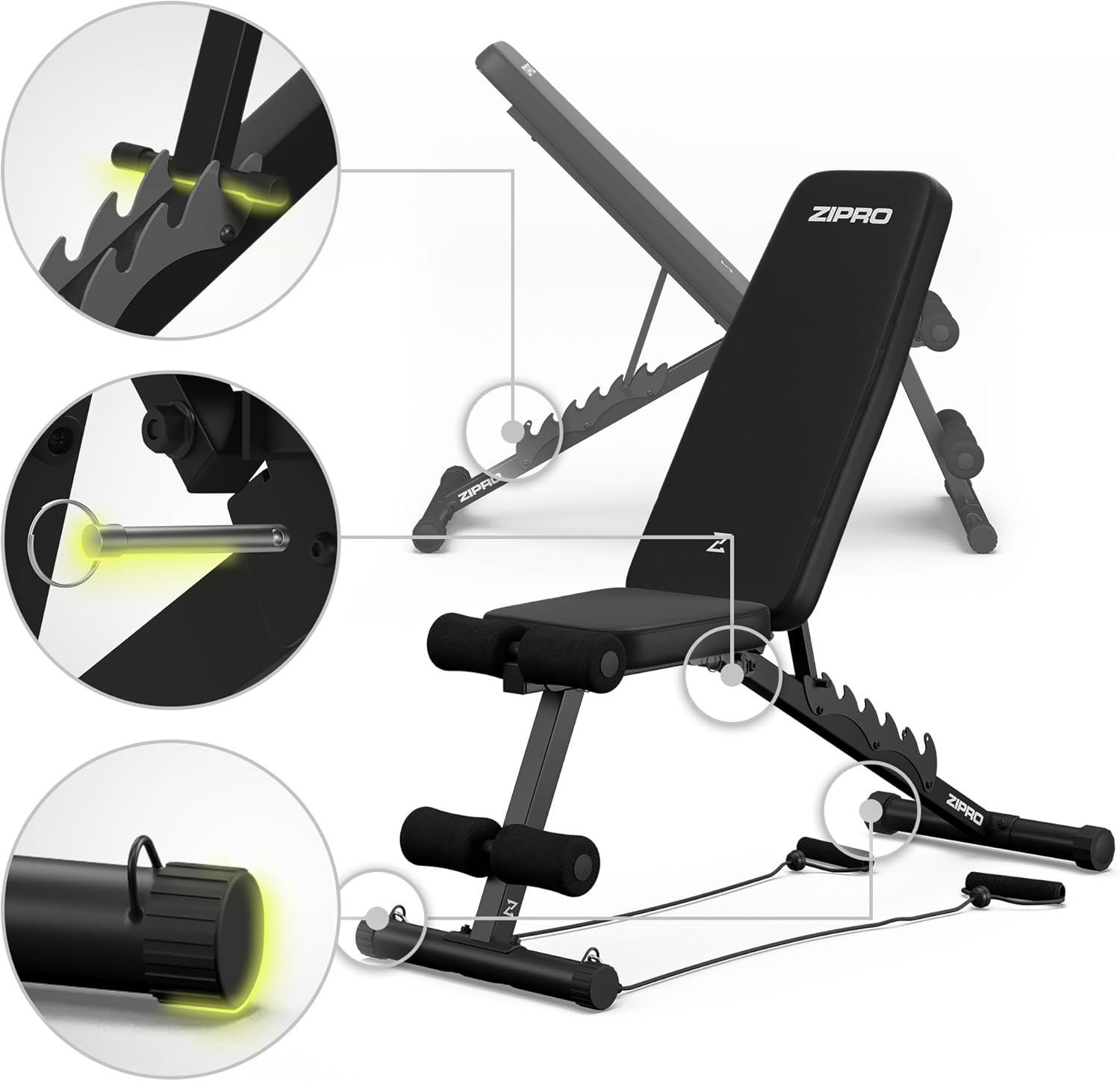 - ZIPRO Tempo ist eine robuste klappbare Hantelbank für Krafttraining, mit dreieckigen Strukturen ausgestattet, die eine optimale Gewichtsverteilung während des Trainings sichert.