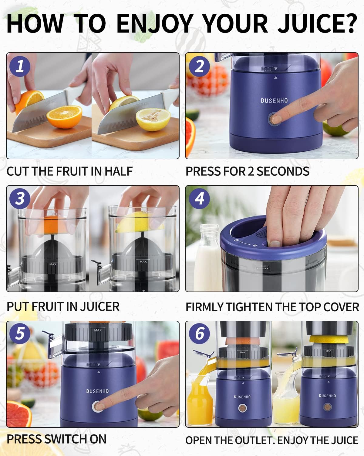 - đăWARUM DUSENHO JUICER WĂHLENăDer elektrische Entsafter hat eine gute QualitĂ€t und Ăsthetik. 45-Watt-Motorleistung, damit in 20 Sekunden eine Tasse Saft entsteht, weniger LĂ€rm und kein SchĂŒtteln oder Kippen, wenn es funktioniert. Geniessen