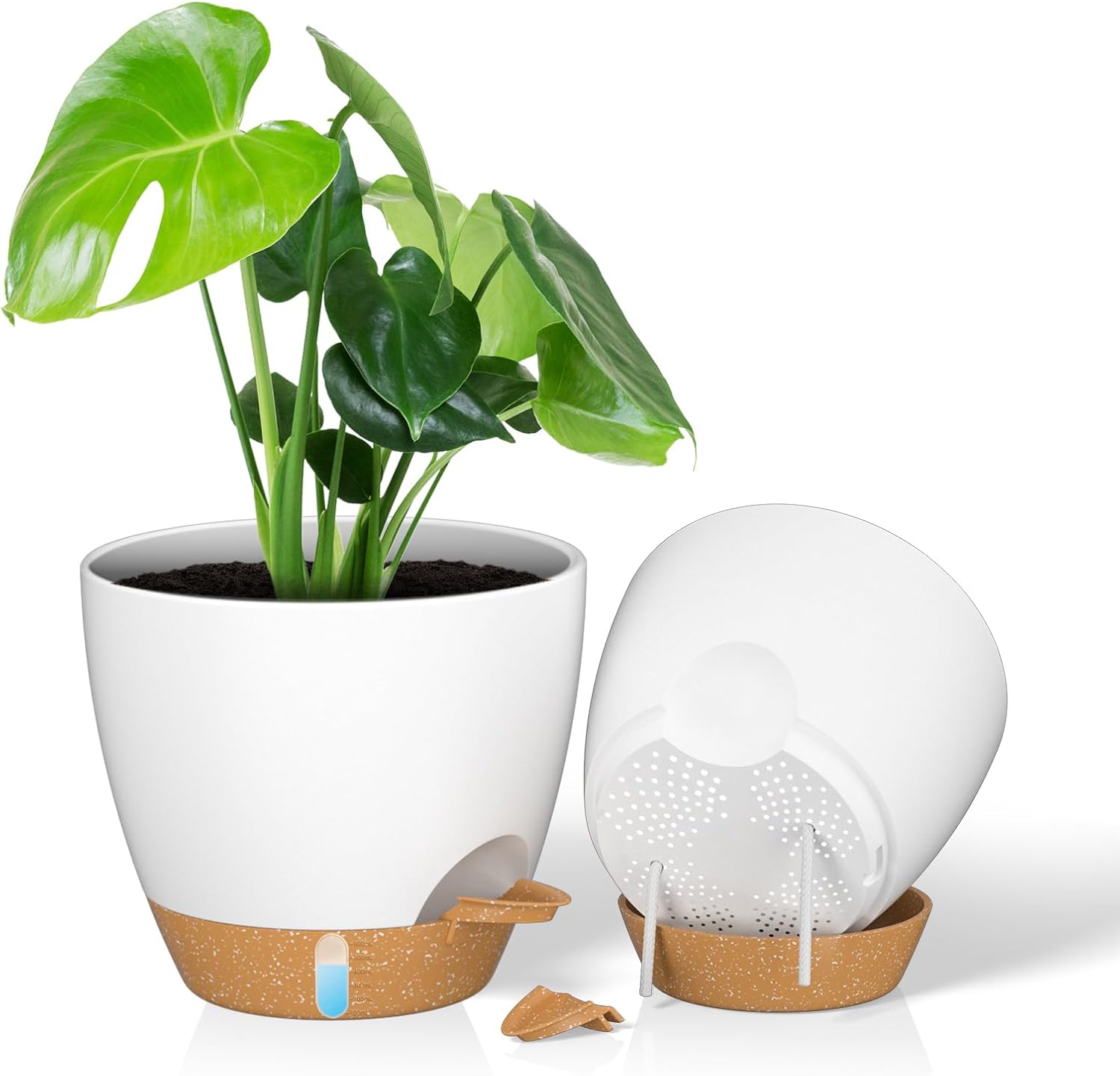 - Set mit 2 Pflanzentöpfen: Durchmesser 25,4 cm, Höhe 20,6 cm; matte Farbe ist perfekt für jedes Heim Dekor Stil. Self Bewässerung Lippe Design für einfache Bewässerung, perfekt für Innen / Büro, kann mehr komfortable grüne Dekoration und