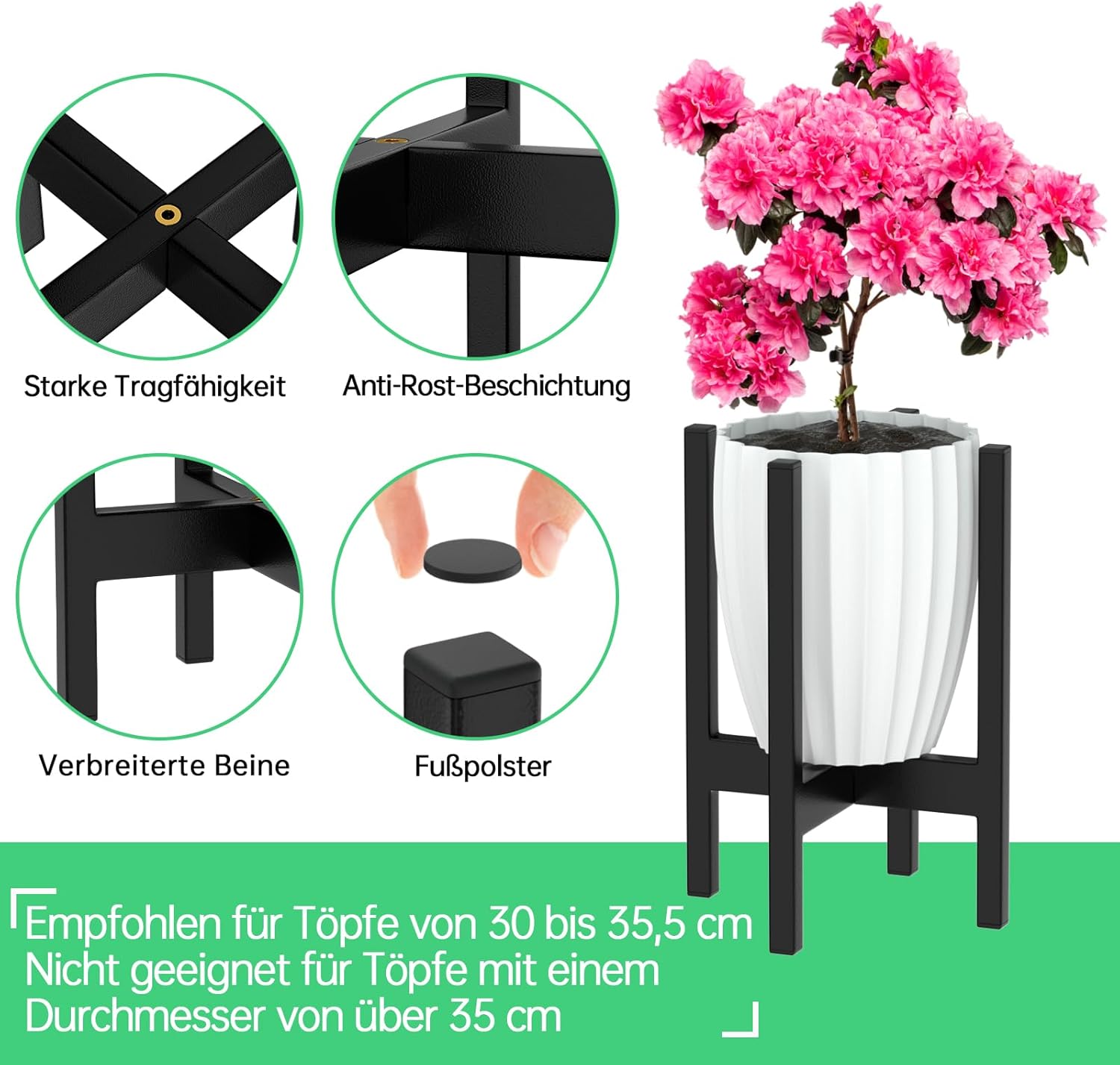 • 2 EINSATZMÖGLICHKEITEN: Der schwarze Pflanzenständer ist für Töpfe bis 35,5 cm (14") geeignet und hat 2 verschiedene Höhen. Durch einfaches Umdrehen des Pflanzenhalters lässt sich die Höhe verändern und die Funktion umkehren.
