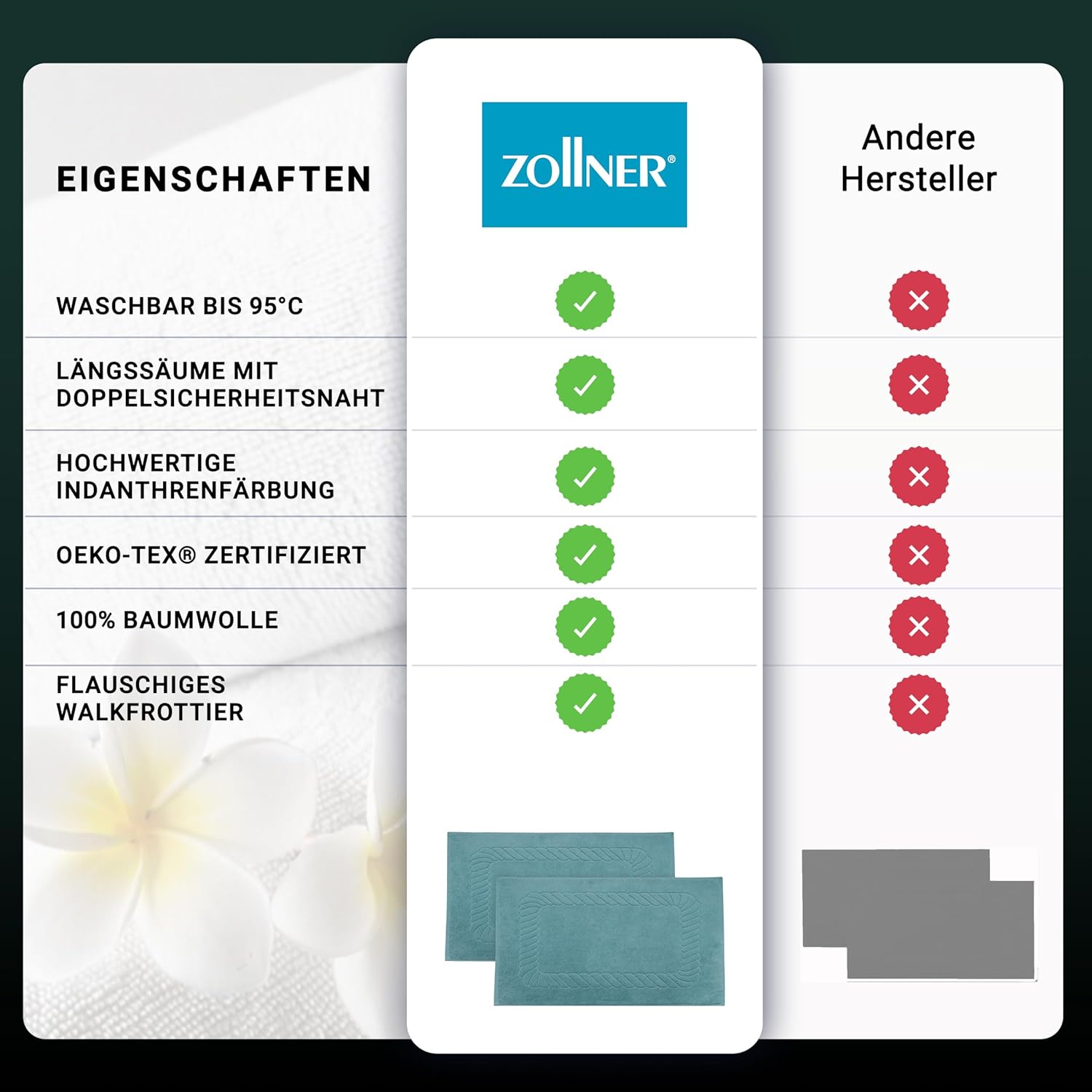 - SIE WOLLEN NOCH MEHR? Entdecken Sie die Vielfalt von ZOLLNER! Mit Klick auf den Marken-Store, oberhalb entdecken Sie alle ZOLLNER-Produkte, von Bad-, Küchen- und Wohnzimmertextilien bis hin zu Schlafzimmer und Haushaltswaren.