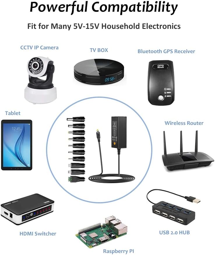 - Dieses Schaltnetzteil passt für CCTV-Kamera, Baby-Monitor, LED-Streifenlicht, USB-HUB, Lautsprecher, Handy, Router, Waagen, und mehr Haushaltsgeräte
