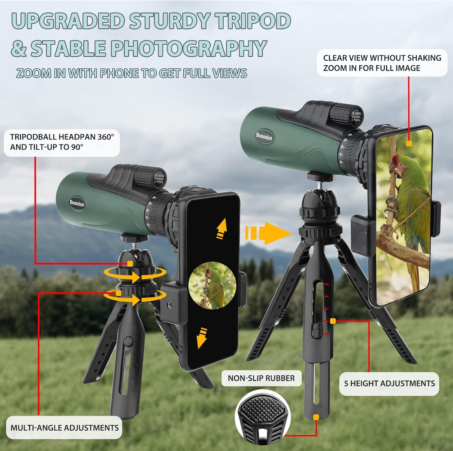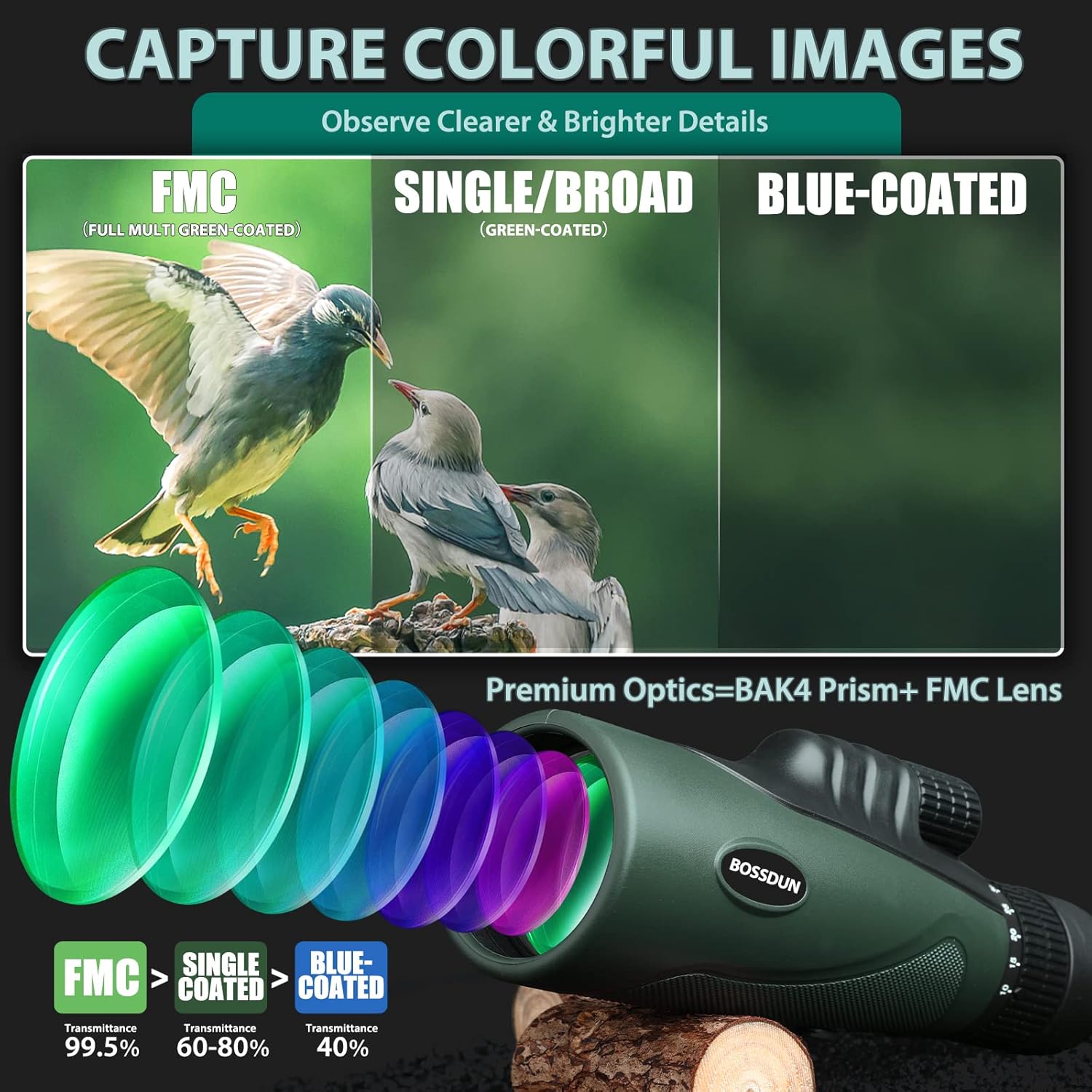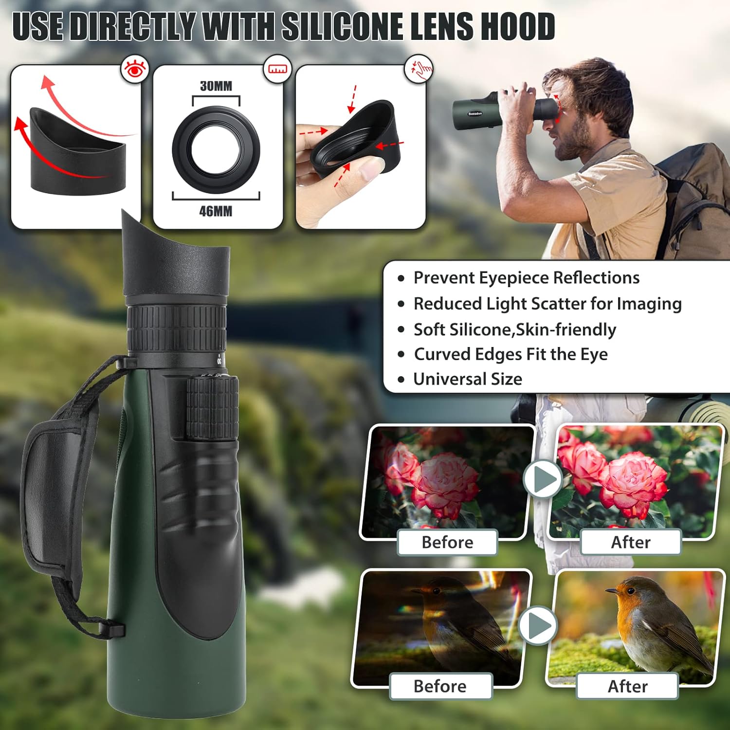 - 【Super helle Sicht, klare Low Light Vision】Monokulare für Erwachsene ausgestattet 20mm grosses Okular, bietet mehr komfortable und grössere Sicht. Ausgestattet mit BAK4 Prisma und voll mehrschichtigen Linsen, kann dieses monokulare Teleskop für