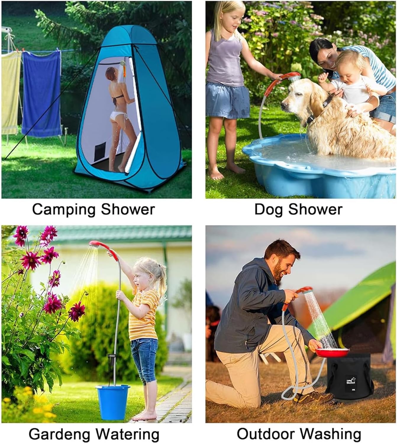 - ▶ Einfache Montage und Bedienung: Tauchen Sie die Pumpe einfach vollständig in Ihren Eimer / Wanne Wasser und schalten Sie den Motor ein. Sie pumpt Wasser aus dem Eimer in einen gleichmässigen, sanften Duschstrom und Sie erhalten eine schöne