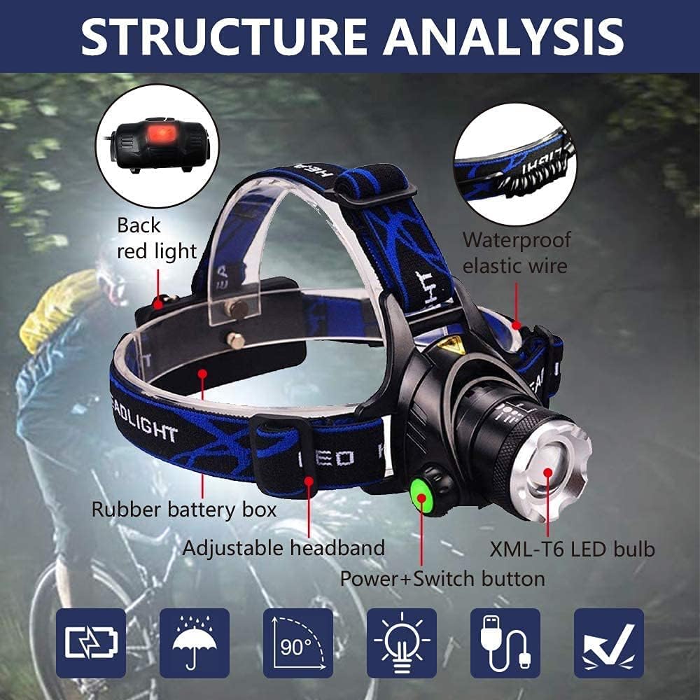 • ★ZOOMABLE & ADJUSTABLE & Wasserdichte Stirnlampe: Mit der Zoom-Stirnlampenfunktion können Sie einen grösseren Helligkeitsbereich sehen. Der Lampenkopf kann um 90 Grad gedreht werden, IPX-4 wasserdichtes Design, passt sich an verschiedene Szenen an.