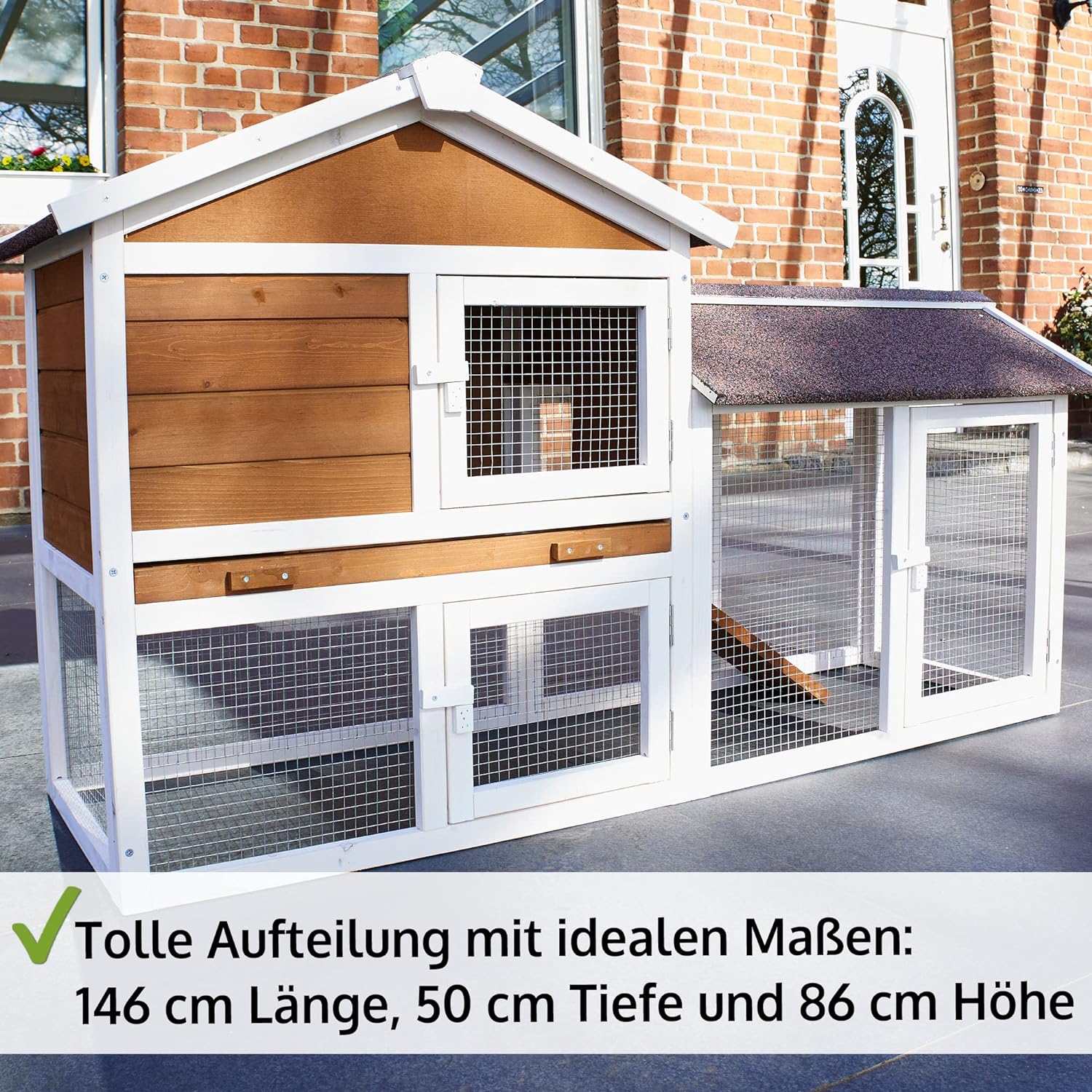 - WITTERUNGSBESTÄNDIG – Das premium Kleintiergehege (Nagerkäfig, Freilaufgehege, Aussengehege) wurde mit ungiftiger Farbe in weiss und braun gestrichen und schützt die Villa aussen ideal vor Nässe