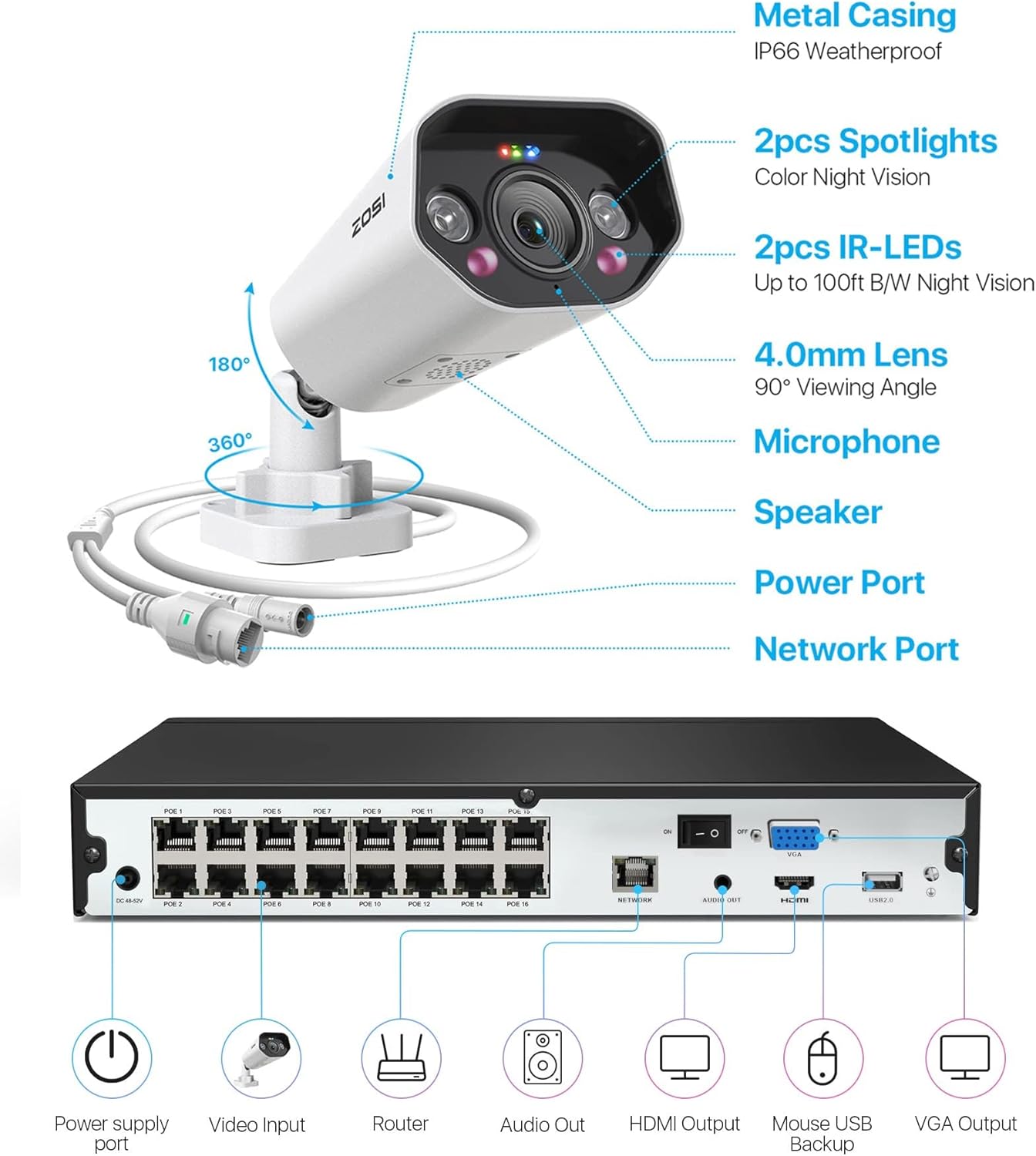 - (1) [4K Ultra HD & Farb-Nachtsicht] Diese 4K Überwachungssystem mit viermal Pixel als 1080p bietet schärfere Bilder und realistischer Farbwiedergabe. Die Erkennung potenzieller Kriminalität war noch nie so einfach wie mit überlegener 4K-Auflösung.