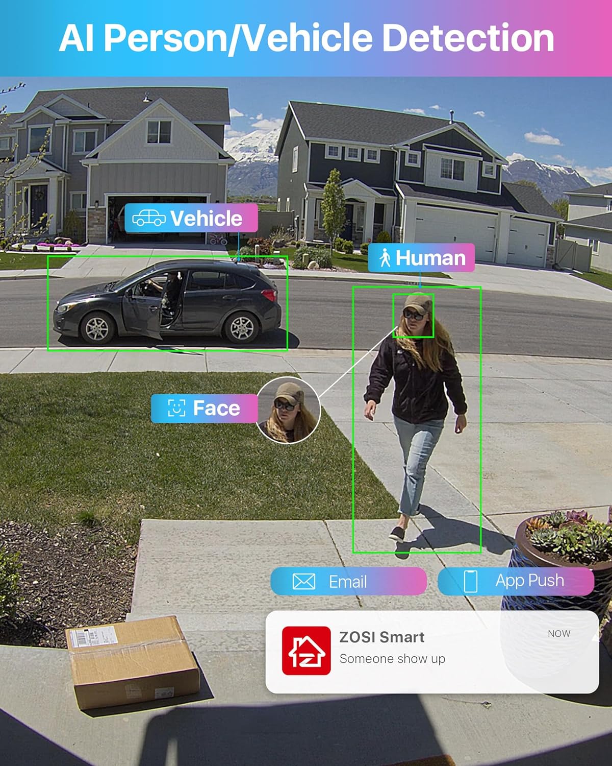 • (5) Personenerkennung und Echtzeit Alarm: Der POE NVR mit KI Überwachungstechnik kann die Personen genau erkennen und Ihnen echtzeitig durch App Push und Email Alarme benachrichtigen. Kostenlose ZOSI App für Smartphone und Software für Laptop&PCs.