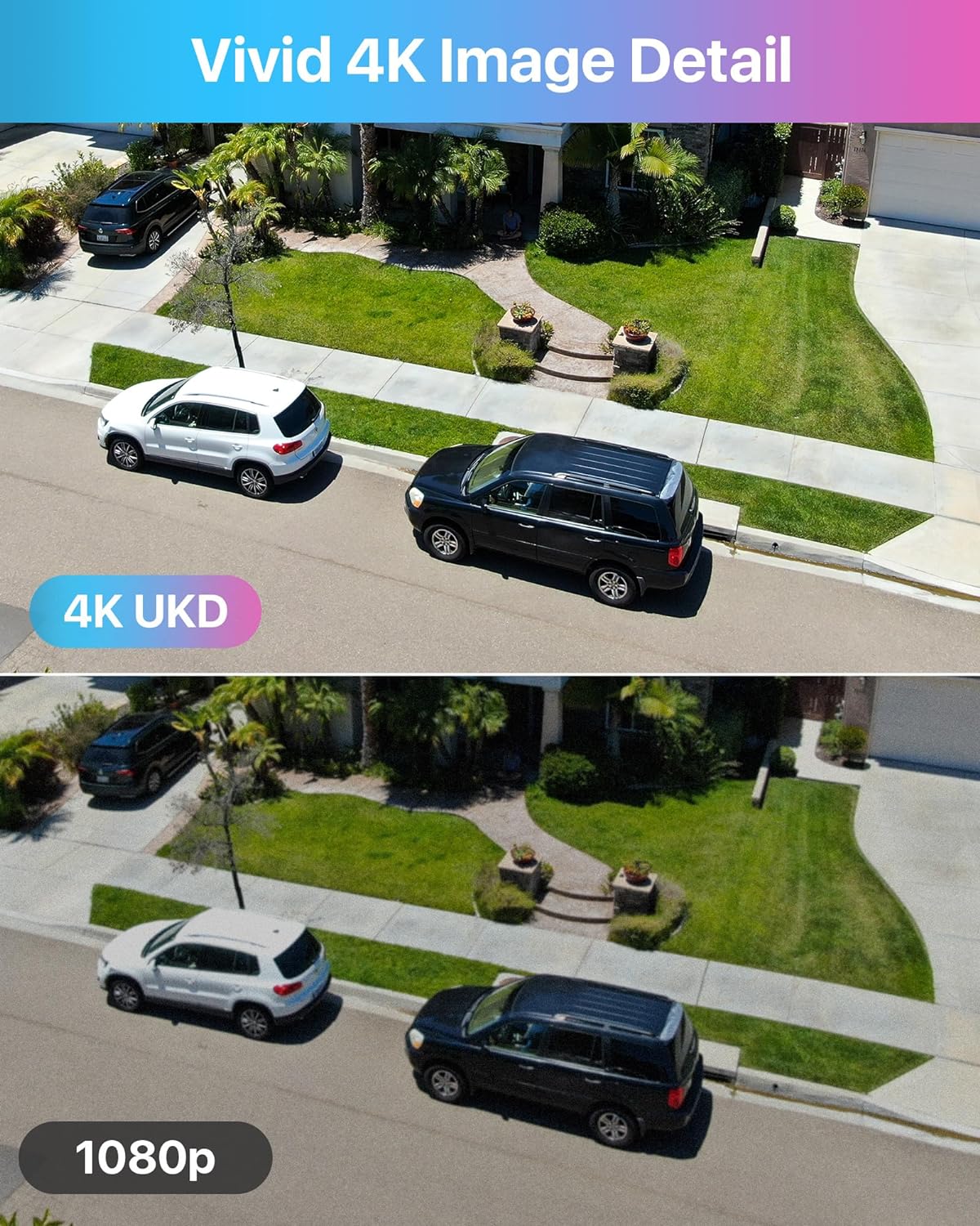 • (2) 4K 8MP HD Videoüberwachung: Eine effektive Überwachungslösung für Garten, Eingangstür, Flur, Garage, Büro usw. Sehen Sie Videos Multikanälen vor Ort oder aus der Ferne, um die Situationen jederzeit zu überprüfen.