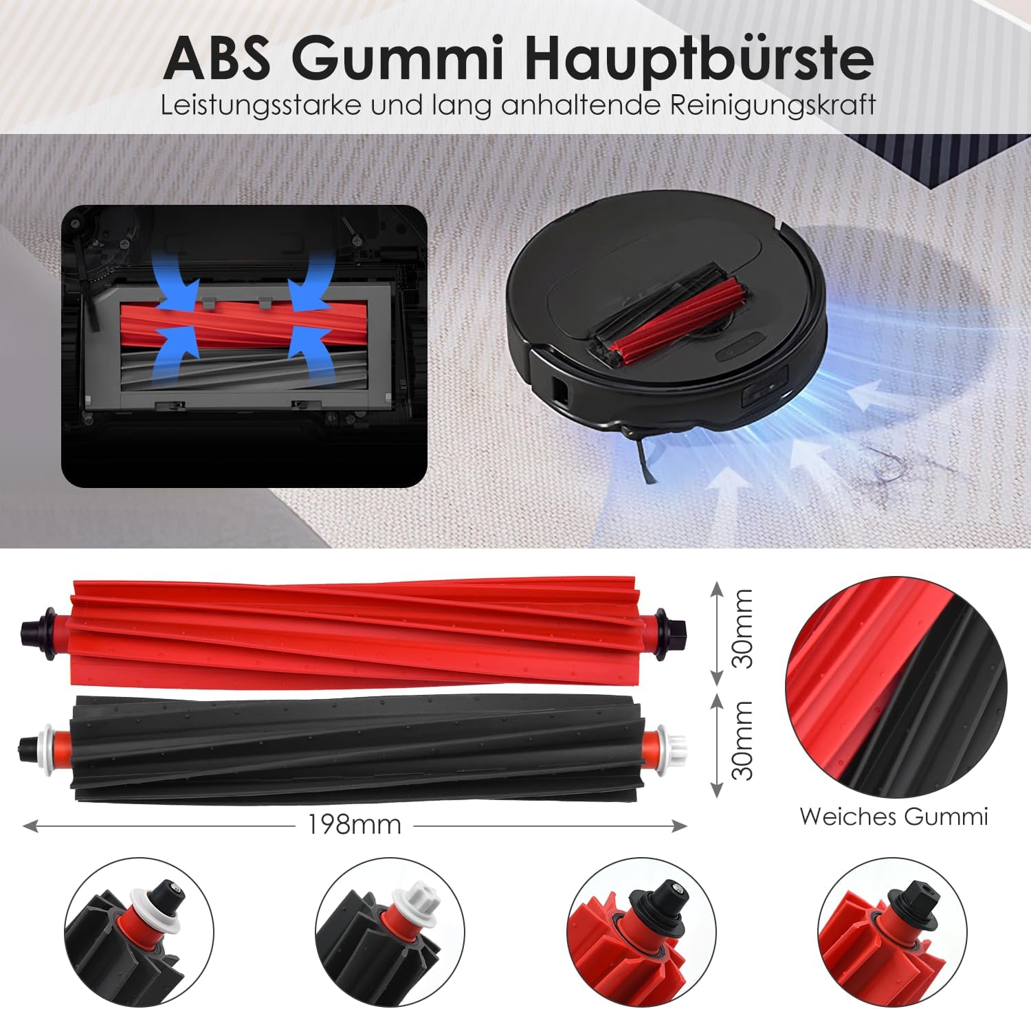 - [Die abnehmbare ABS-Gummi-Hauptbürste] kann so eingestellt werden, dass sie sich dreht und den Staub in den Staubsaugerbeutel fegt - mit starker und lang anhaltender Reinigungskraft. Die Seitenbürsten reichen tief in die Ecken und Kanten, um noch mehr